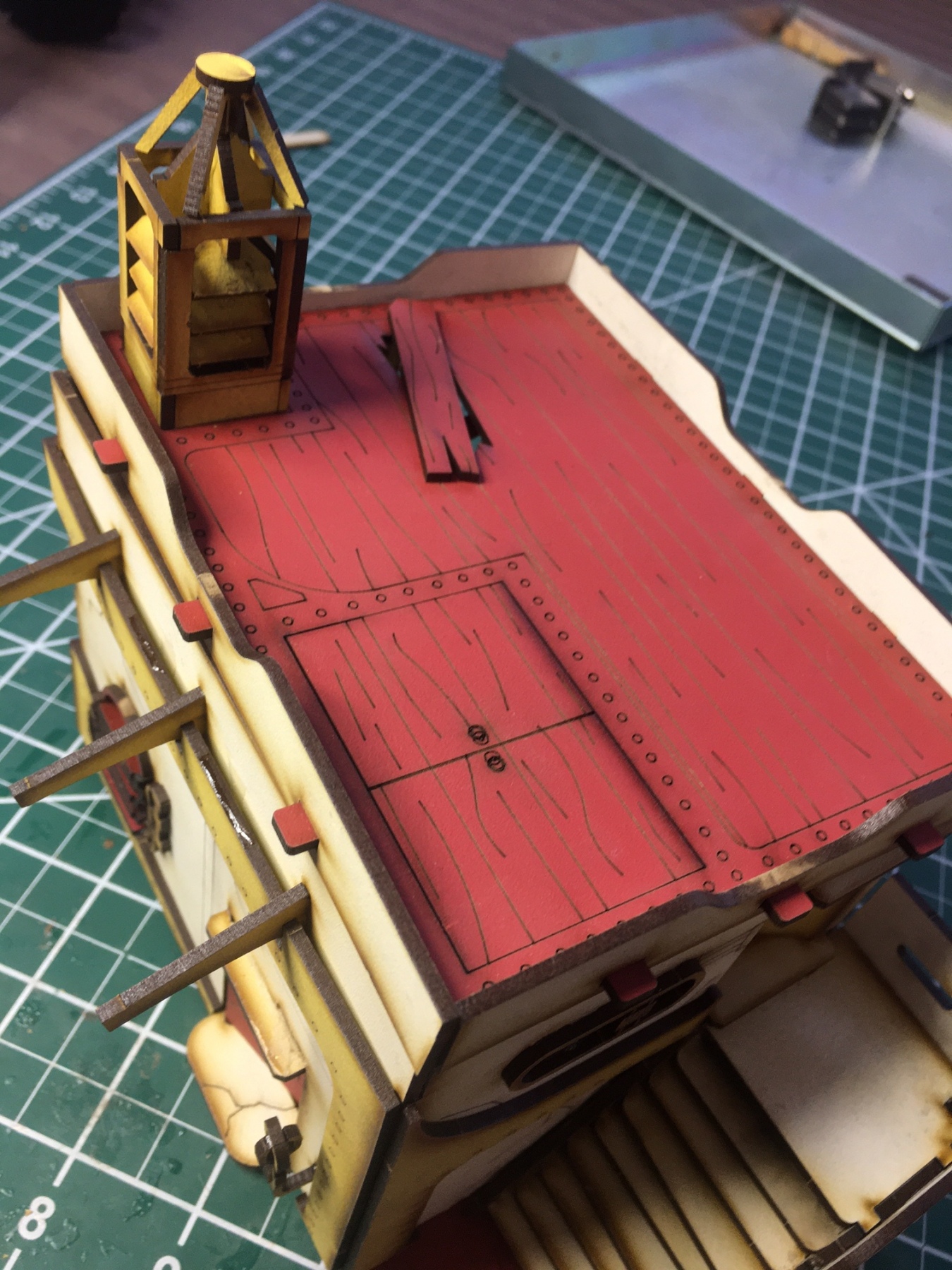 A Domicle – Rio Sonaro Central Texas Board Game and Miniatures Posted on December 13, 2020 by RichardApril 13, 2021 To fill in the time between games, we are building terrain. This is one of the mdf building which is part of a southwestern Texas town. Roof Image 6 of 7