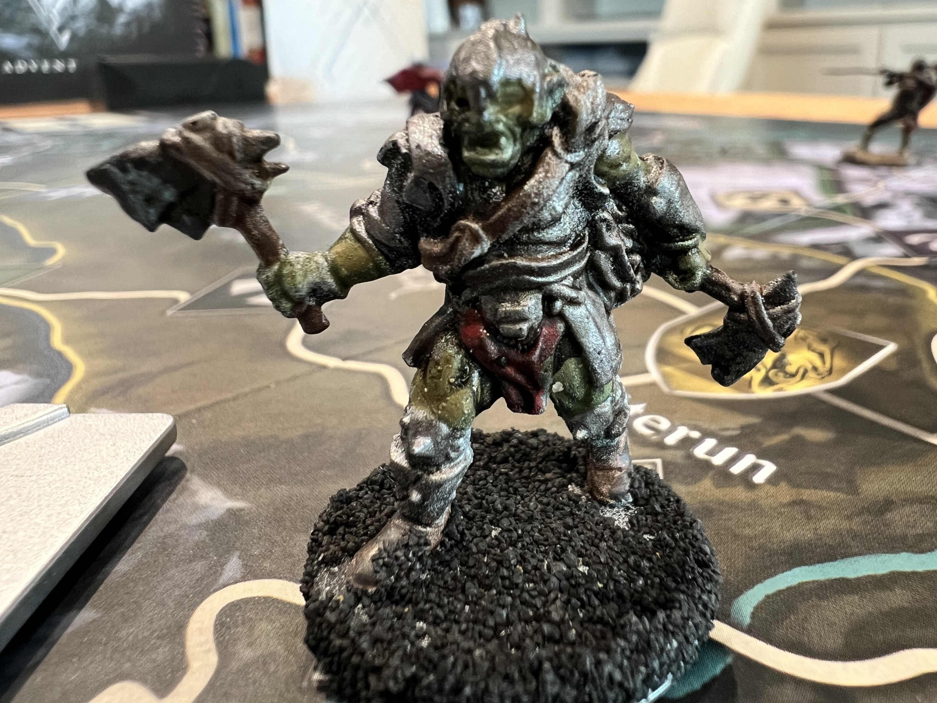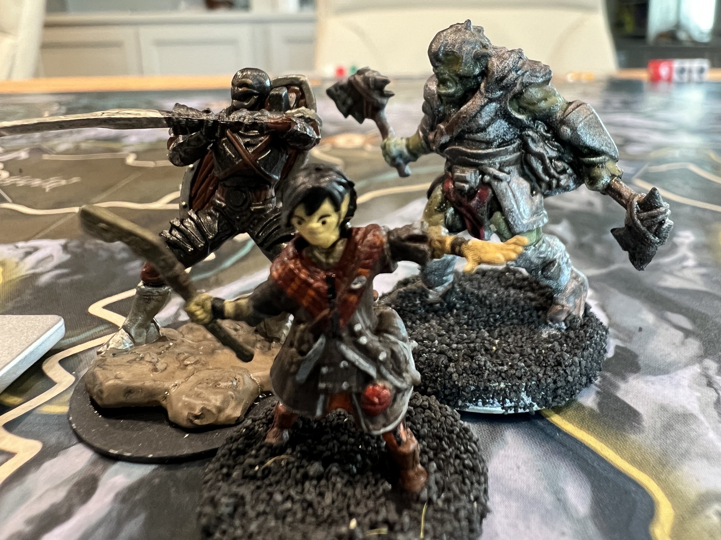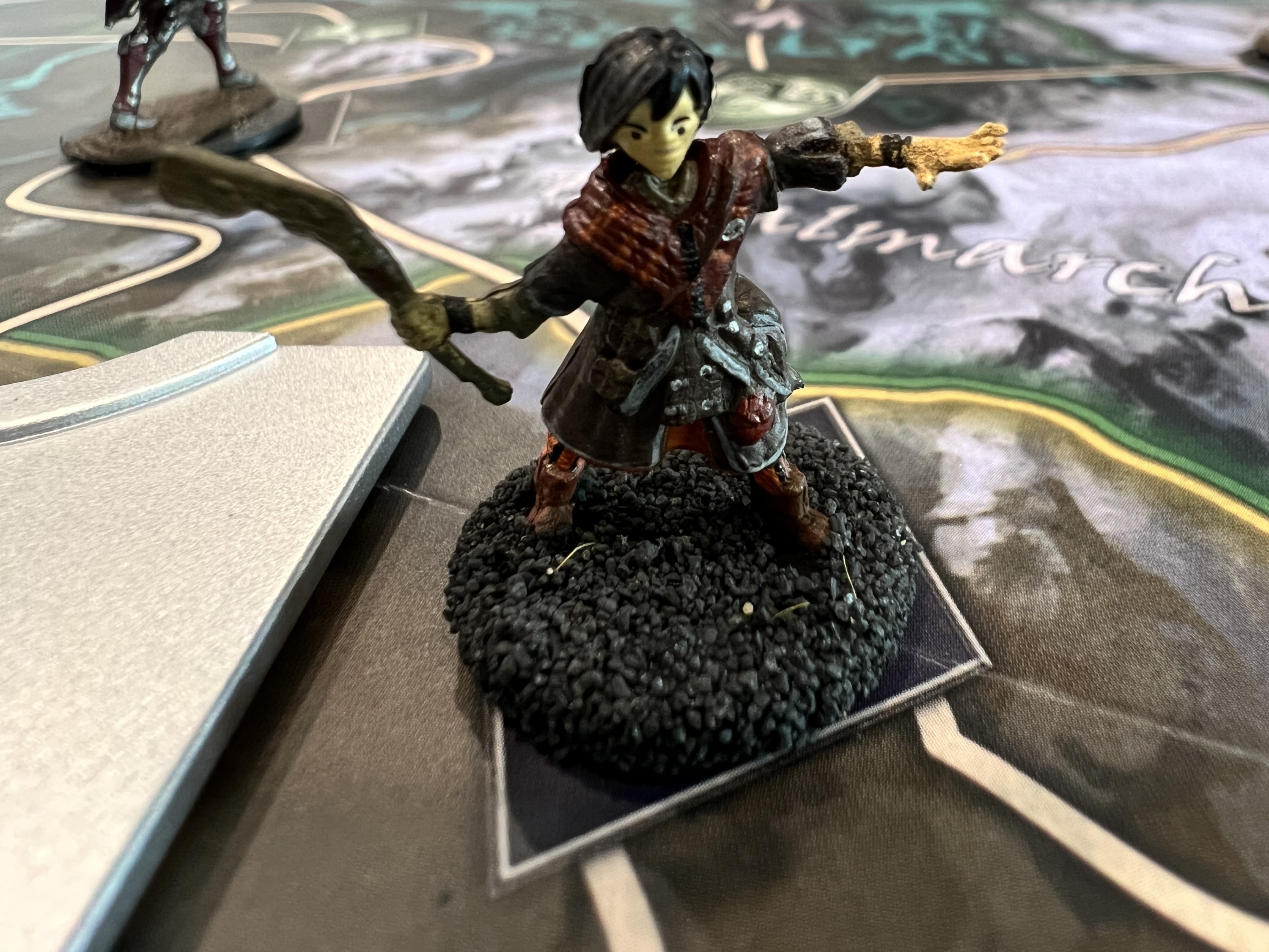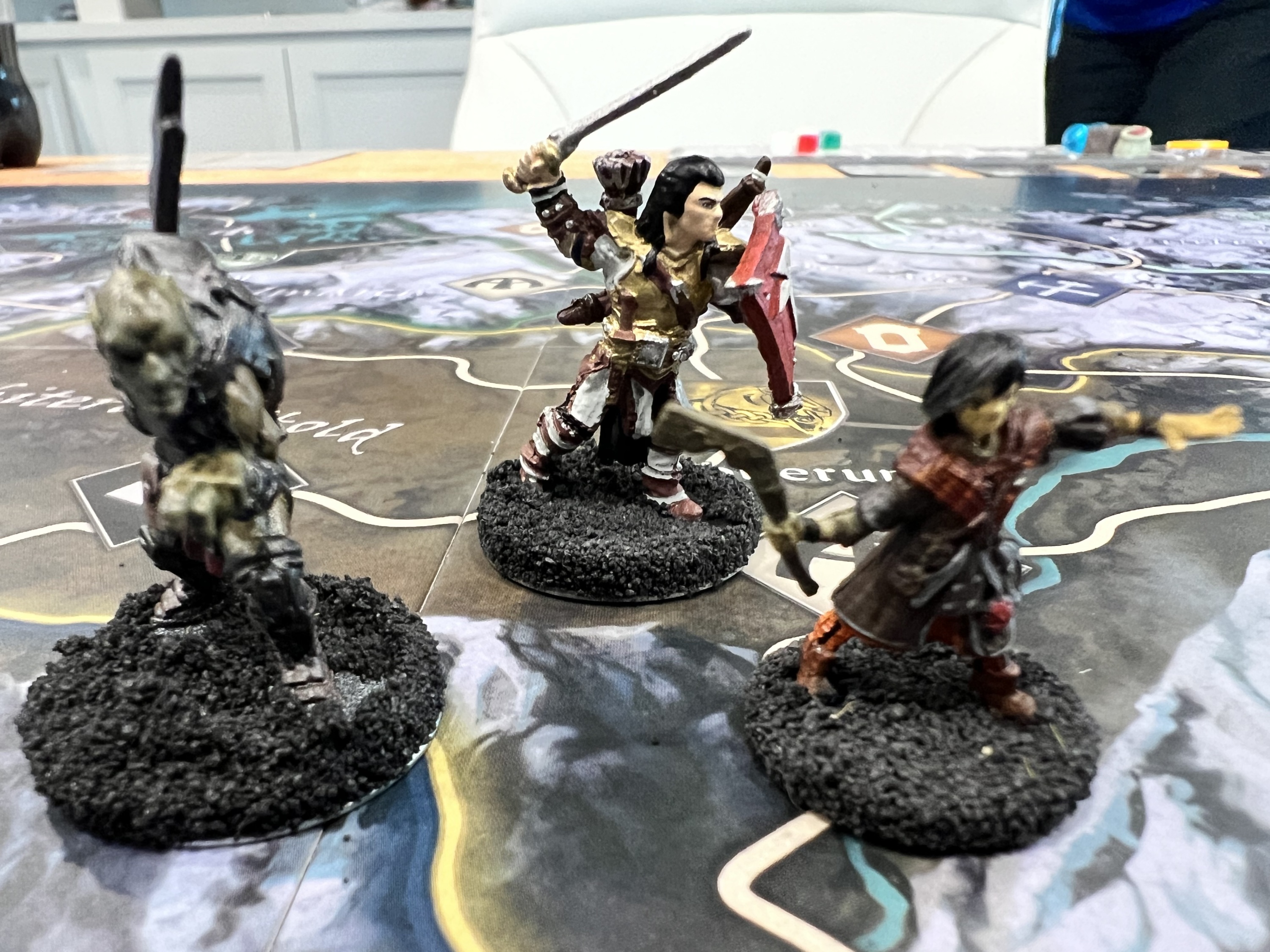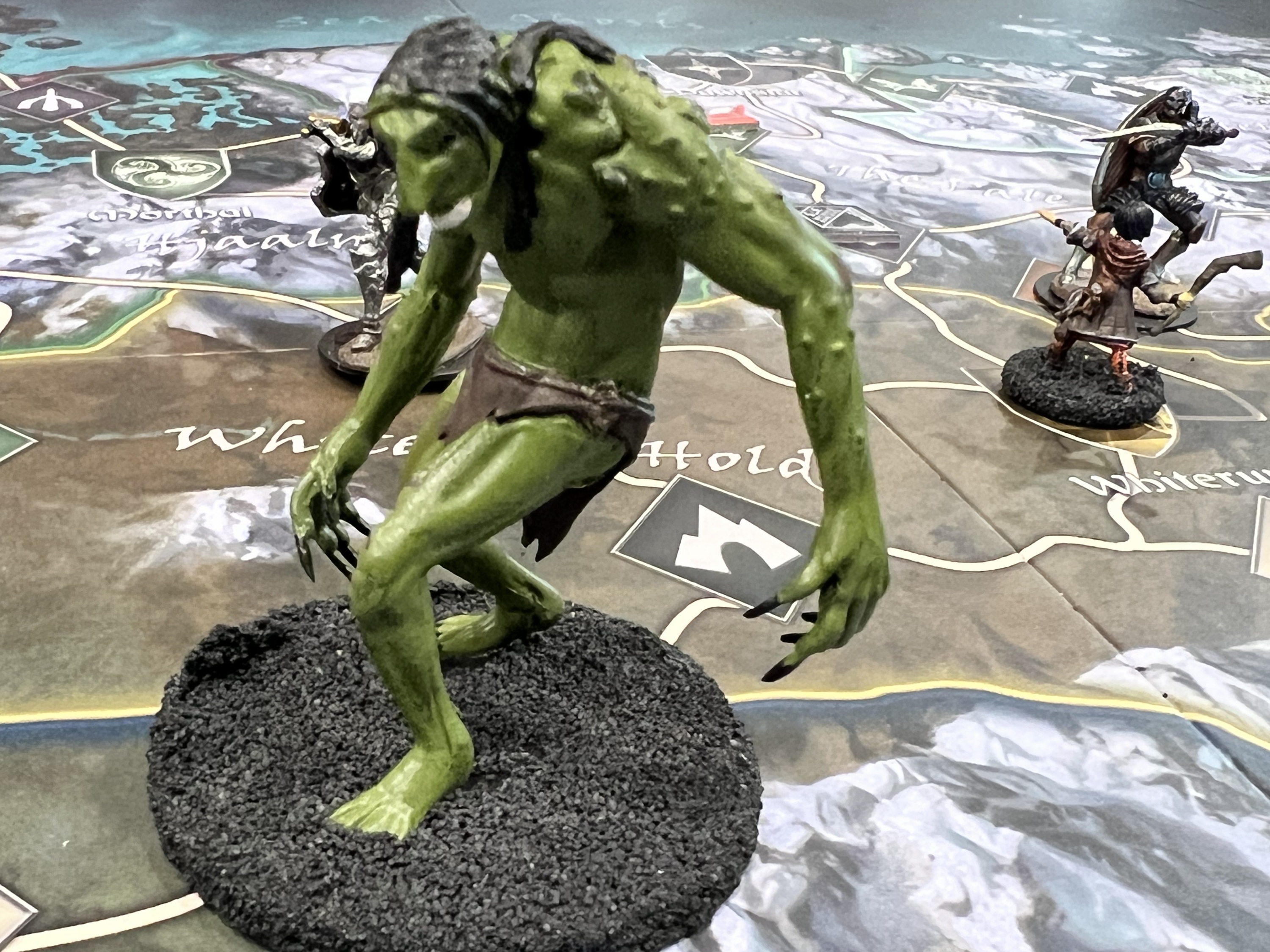 The game board represents the province of Skyrim. Players move their characters — represented by 32mm scale plastic miniatures — across the region, visiting Strongholds, exploring dungeons and meeting interesting characters as the story unfolds. But they are not the only ones there; roaming monsters appear, blocking roads and threatening the peace in Skyrim. Several game effects could lead to the fall of a Stronghold so players need to keep an eye on the state of unrest and the active dangers across the board.
