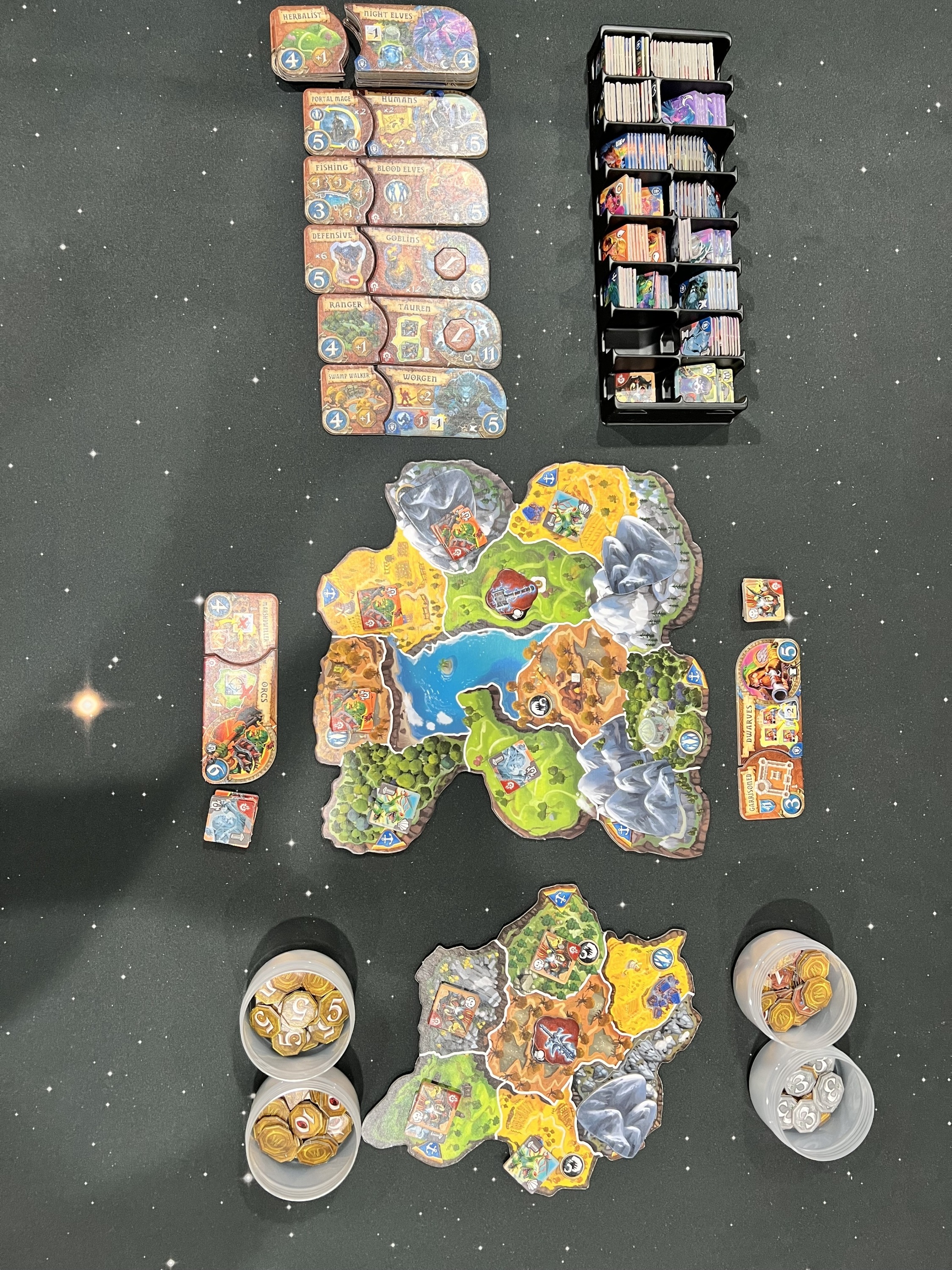 Lee and Richard played a learning game of Small World of Warcraft. We slowly determined the rules and which ones we had forgotten to do.