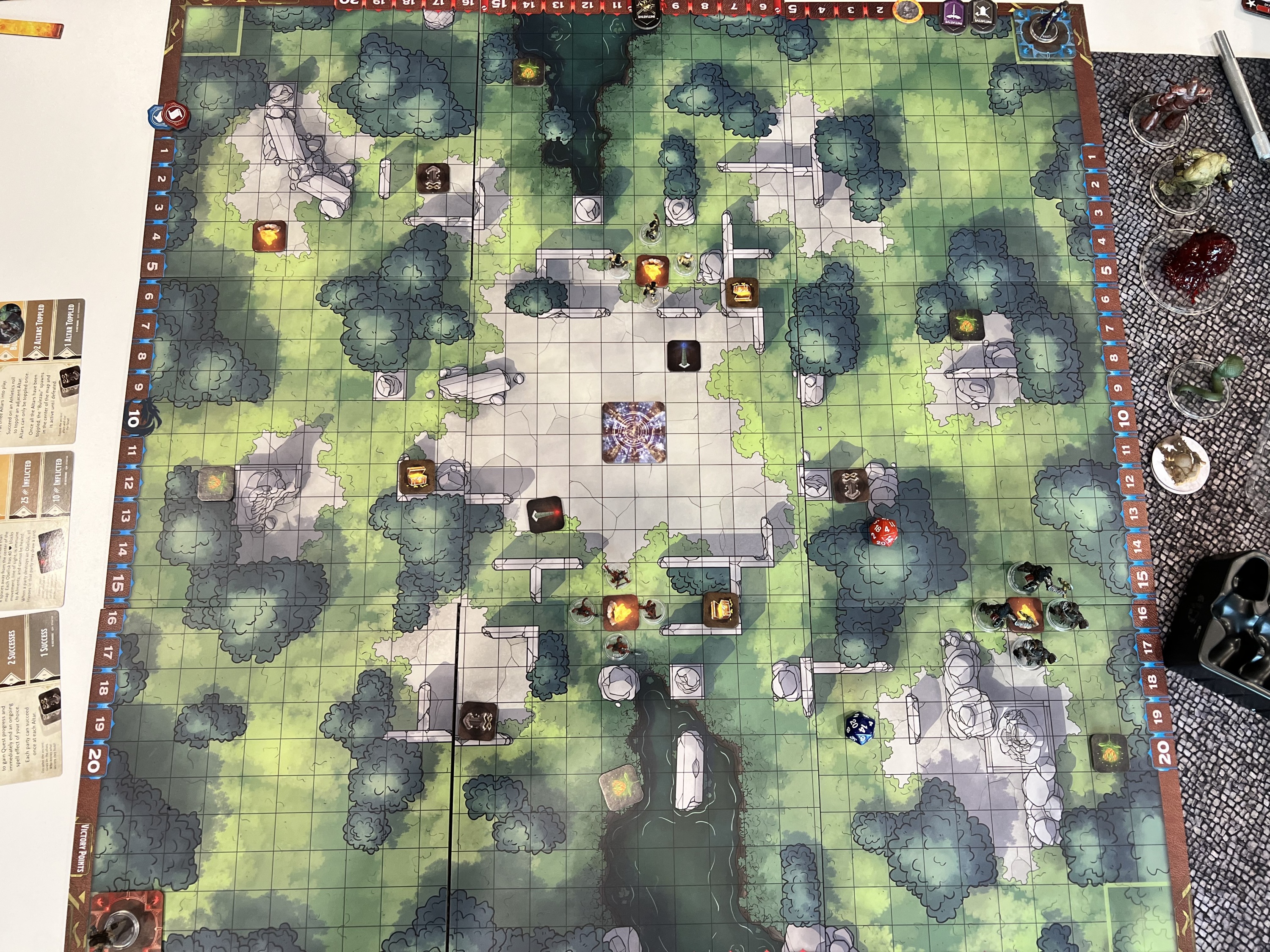 The galaxy is laid out in three rings of hex tiles, most of which get laid during exploration. At the start of play, only the galaxy center tile and tiles for the players’ respective home stars are laid. When exploring, a player chooses a tileless space which is accessible from a star the player occupies. The player then draws a new hex tile from a stack of face-down tiles and lays it in the chosen direction. The player may strategically choose which orientation the tile takes, to create links to existing tiles or to block access by other players.