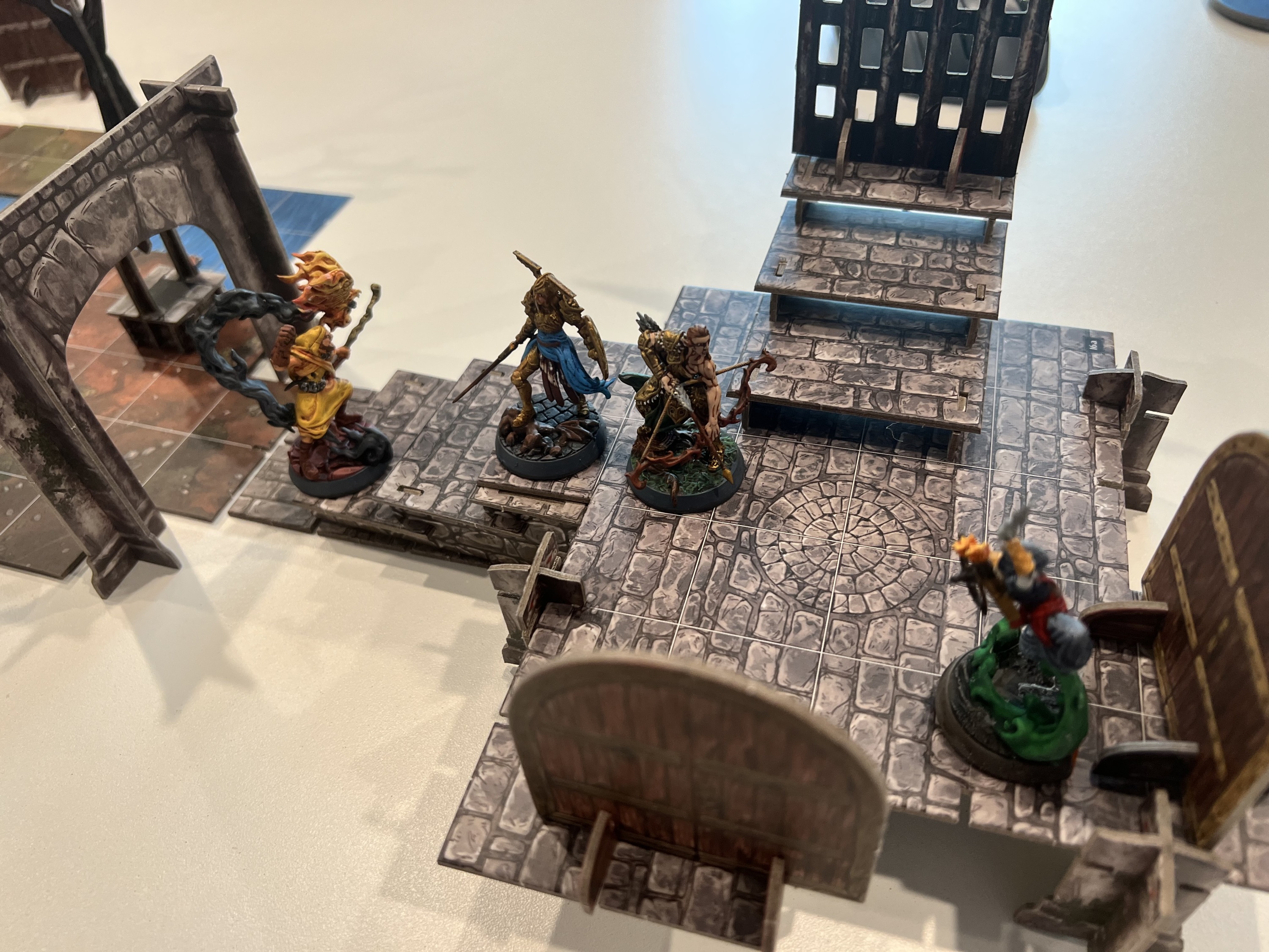 Opened locked gate on third level. Contained a bandit and berserker torturing two villagers on ritual table. Brinn (who ended up wounded) and Galedan killed the baddies while Syrus rescued the villagers.