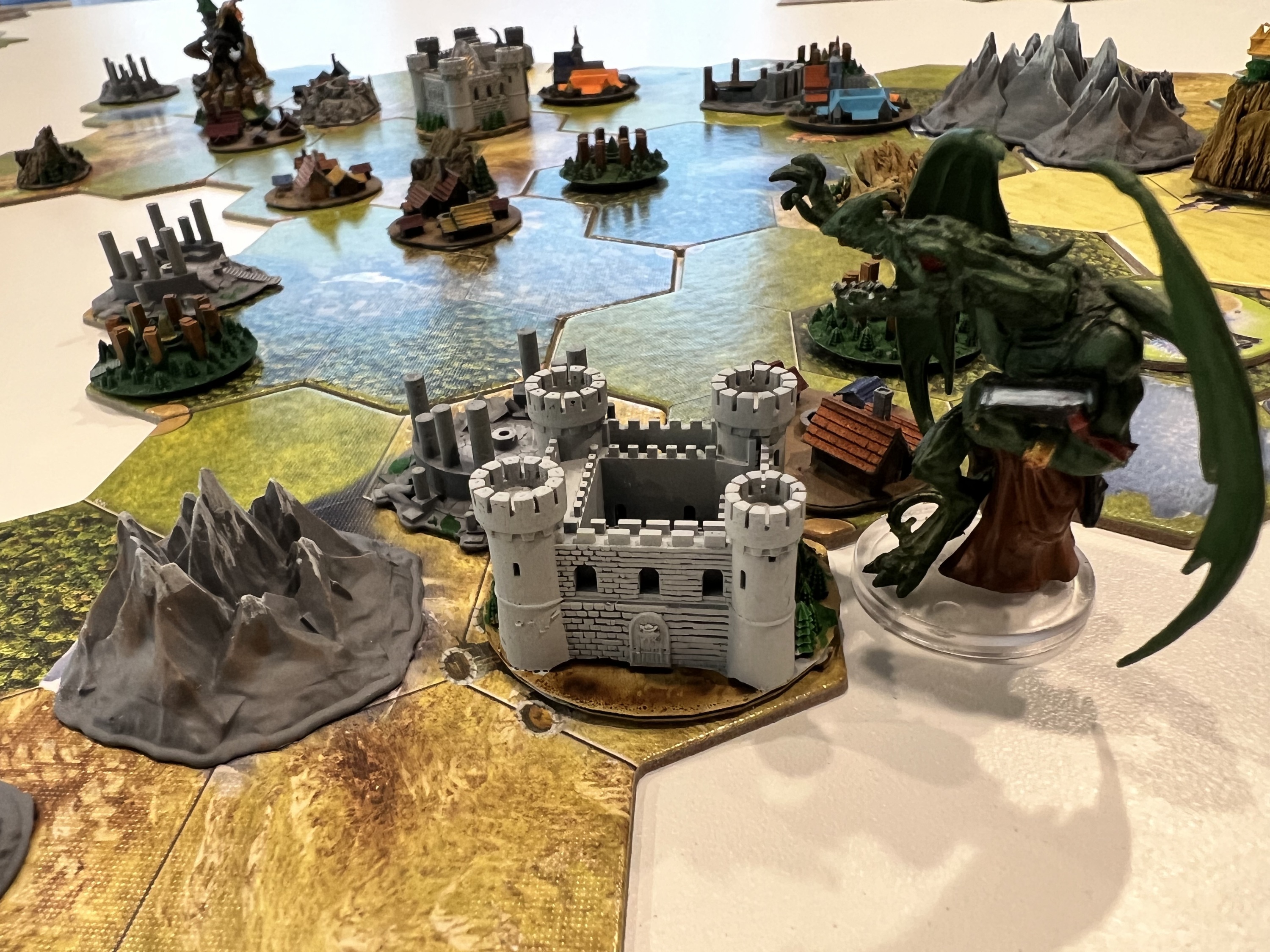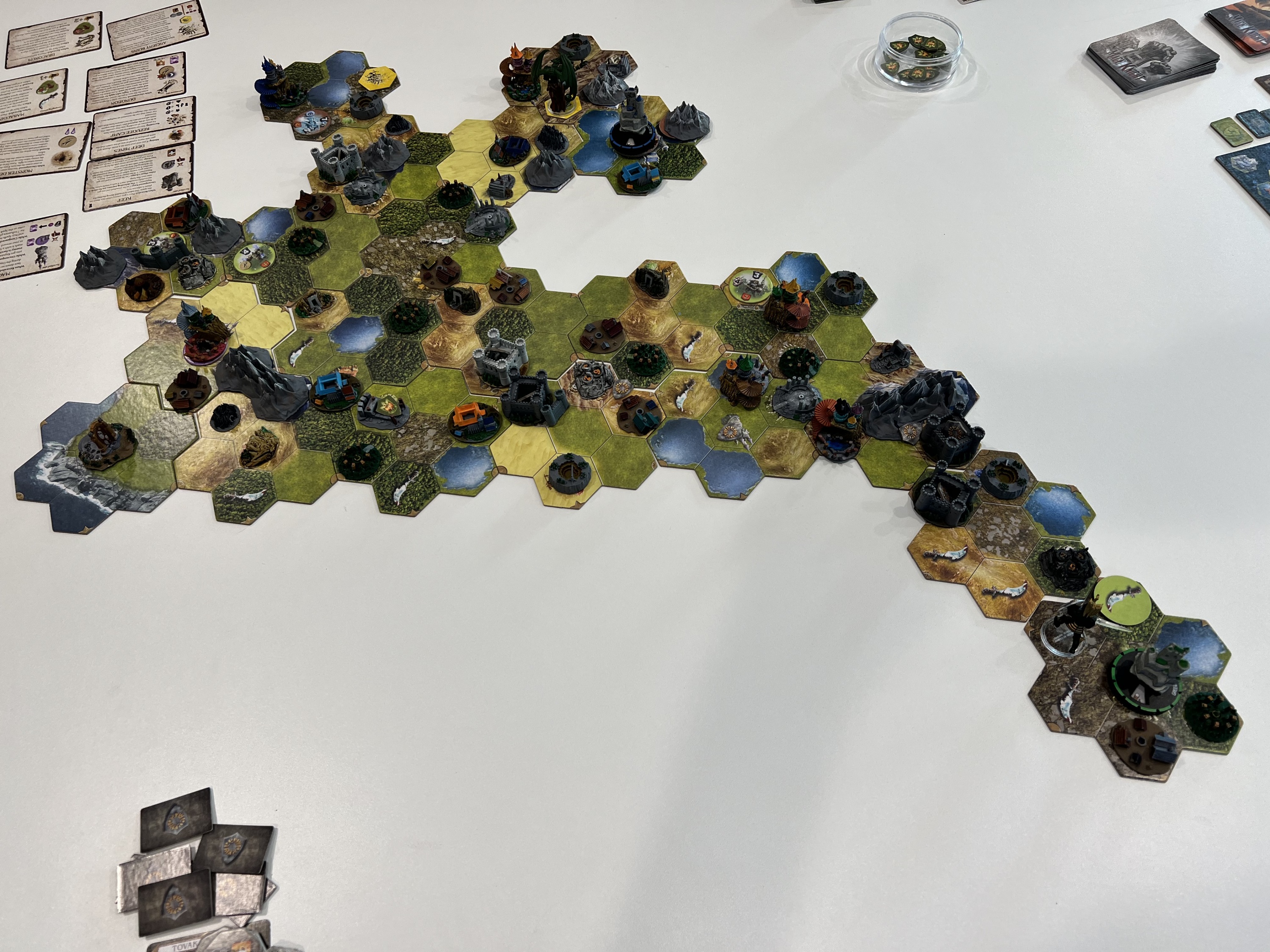 The second scenario was to capture the gold in the middle of the street and take it off board. Richard and Jim started at the far end of the town, while Lee, started in the middle right next to the gold. Game was basically over before it began with Lee making the corner of the board without much trouble.