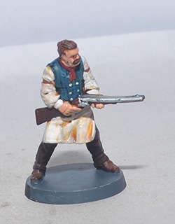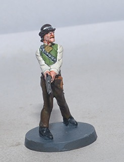 The third scenario was a bank robbery. Jim started close to the bank and got to try to open the vault. Lee made it into the bank and a shootout occurred. Lee got the short end of the straw and was gunned down on the spot with Jim only taking a few wounds. Richard then entered the bank’s back door and had a showdown with Jim. Jim got a shot off wounding Richard but Richard got two volleys off and simply tore Jim apart with the last volley scoring 9 hits on Jim. Richard picked up the bank loot and adjourned to the local cathouse to celebrate. Unfortunately, Richard caught a bad crouch rash and died a year later from insanity.