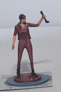 Jim, Lee and Richard played three scenarios.. The first game, Lee and Jim fought it out to the point that both were riddled with holes and down to crawling. Richard then finally got to the middle of the board with a rifle and shoot Jim, who was hiding in a haystack, dead. Lee was crawling away and Richard turned him over so he could see it coming and smashed his head to a pulp with the boot.
