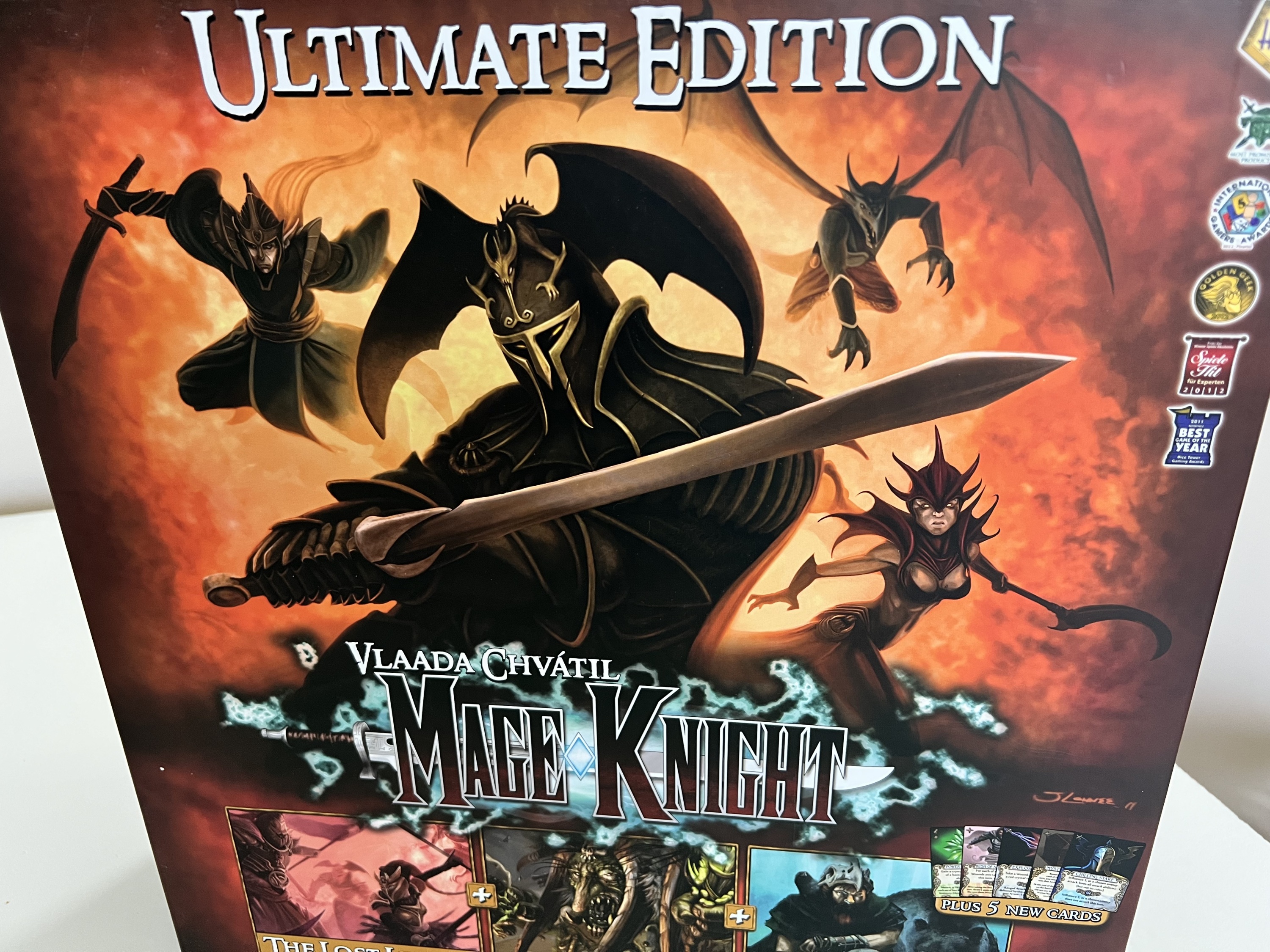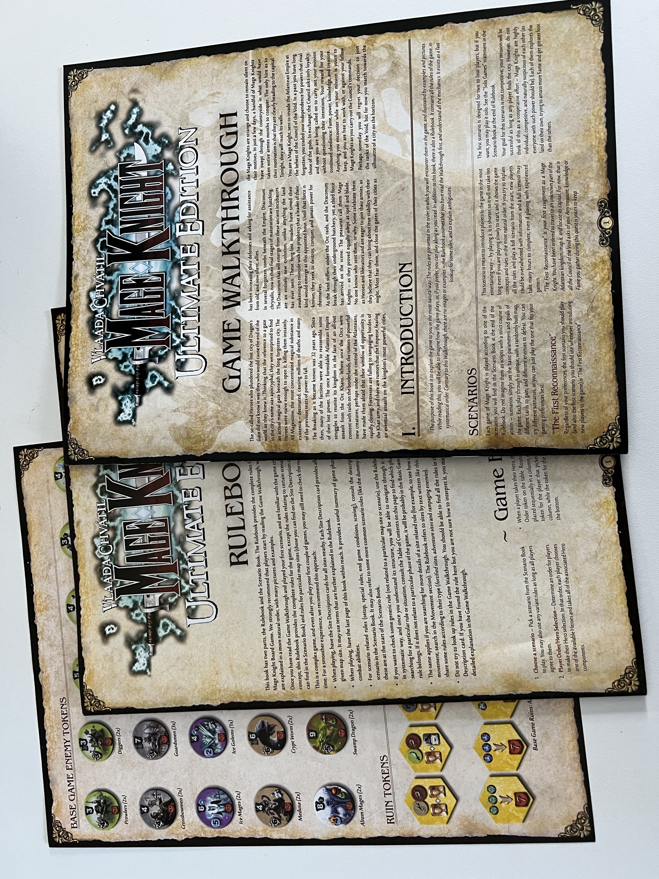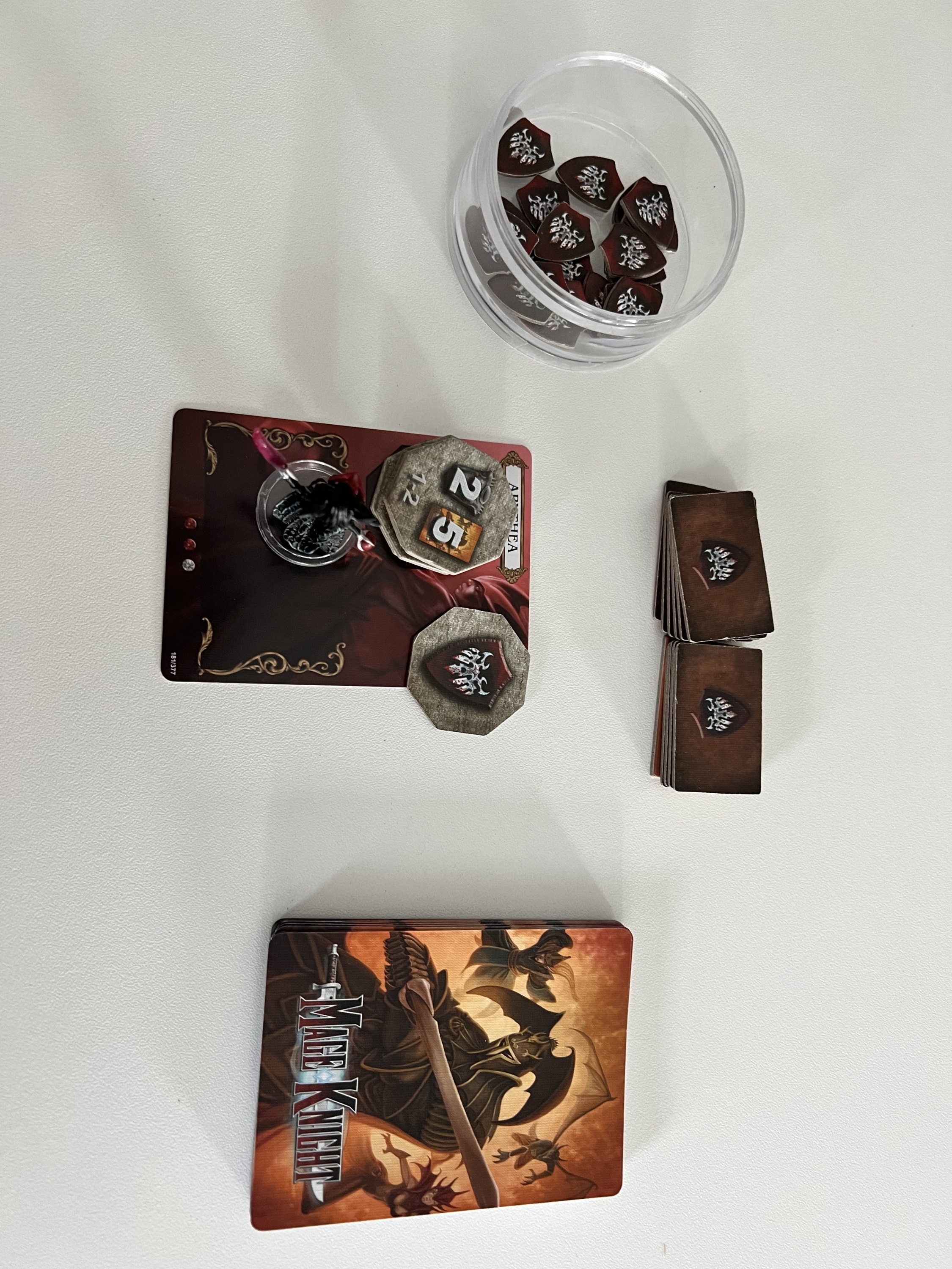 Combining elements of RPGs, deck-building, and traditional board games, the Mage Knight Board Game puts you in control of one of seven powerful Mage Knights as you explore (and conquer) a corner of the Mage Knight universe under the control of the Atlantean Empire. Build your army, fill your deck with powerful spells and actions, explore caves and dungeons, and eventually conquer powerful cities controlled by this once-great faction! In competitive scenarios, opposing players may be powerful allies, but only one will be able to claim the land as their own. In cooperative scenarios, the players win or lose as a group. Solo rules are also included.