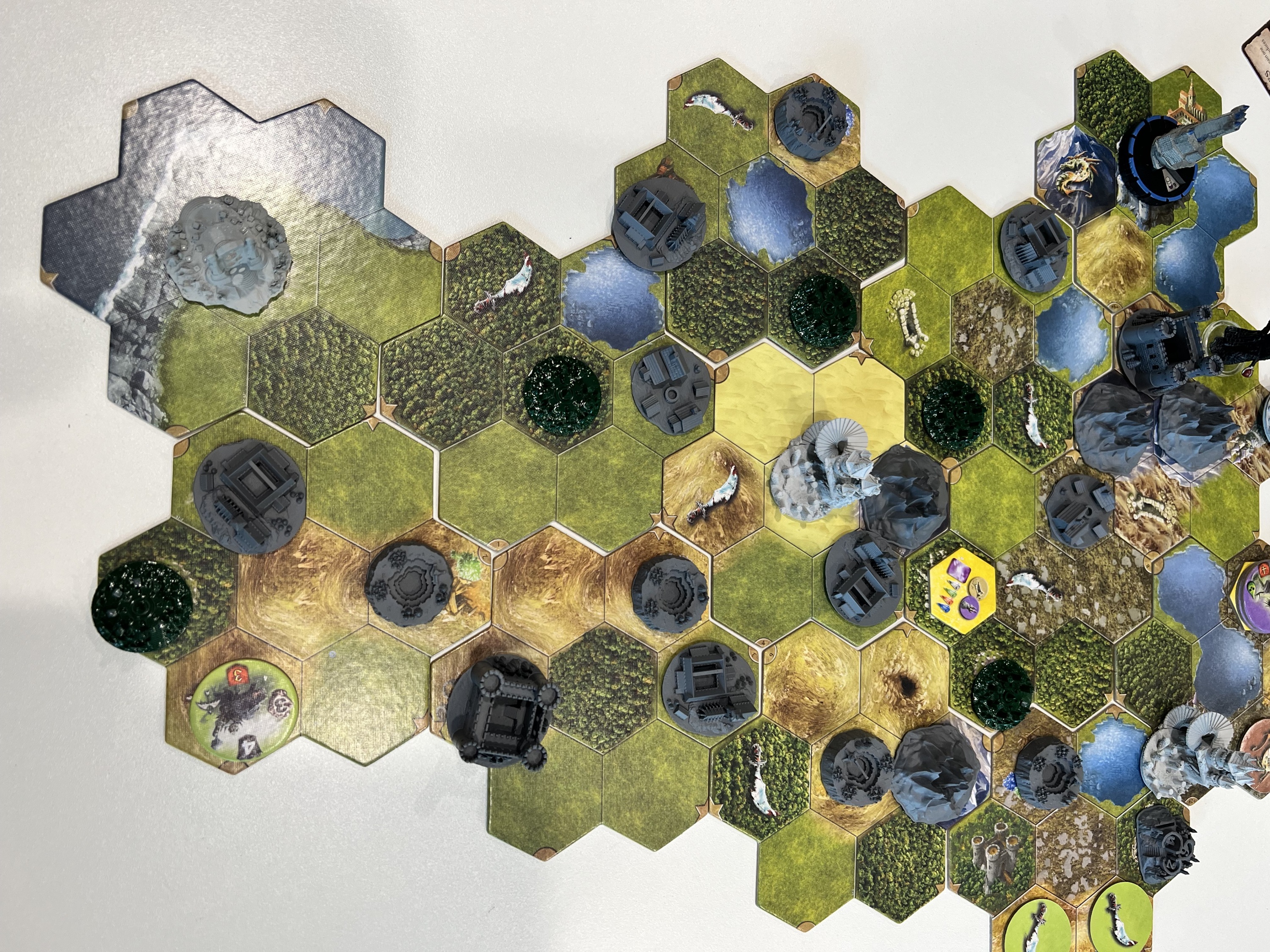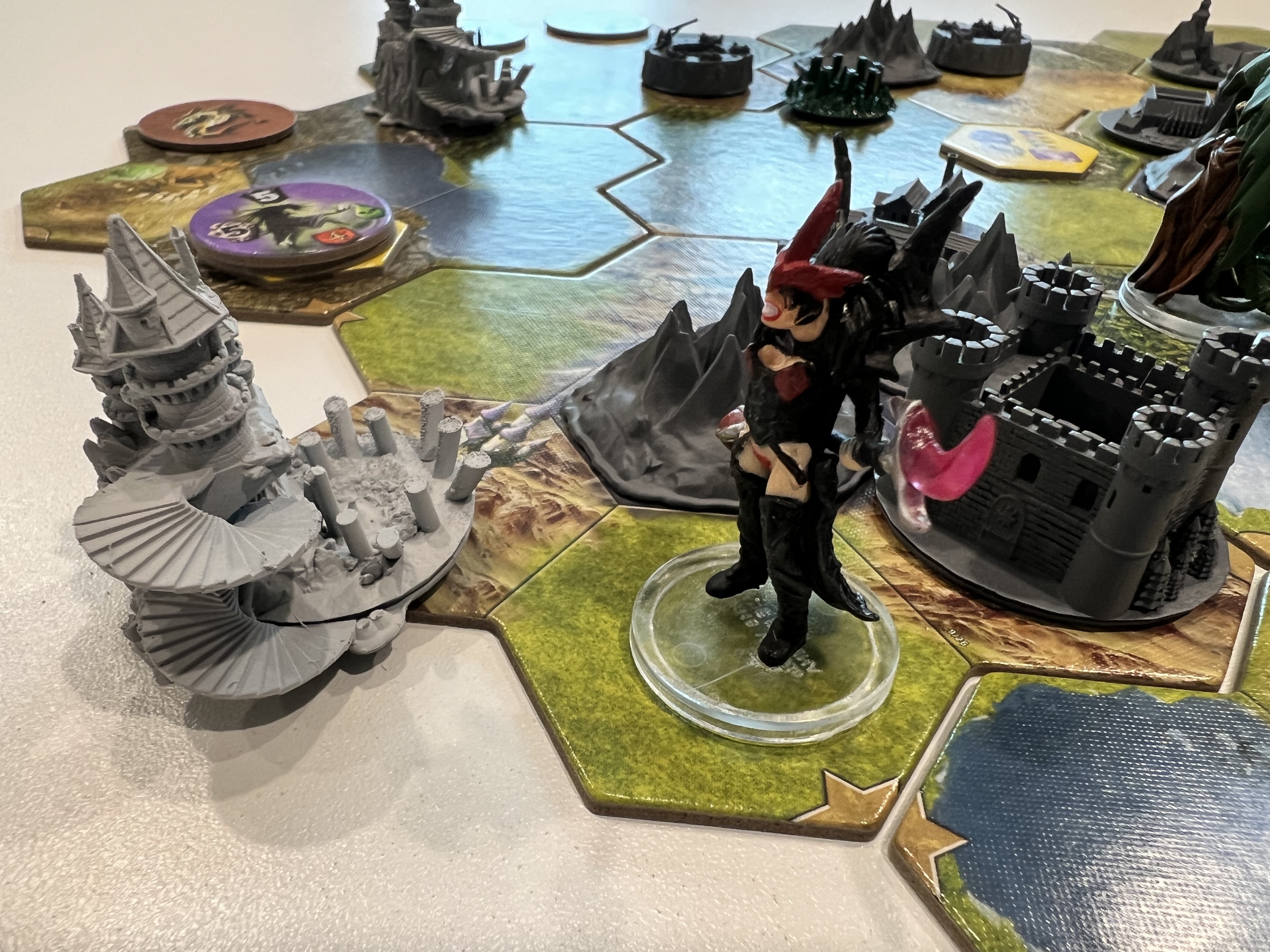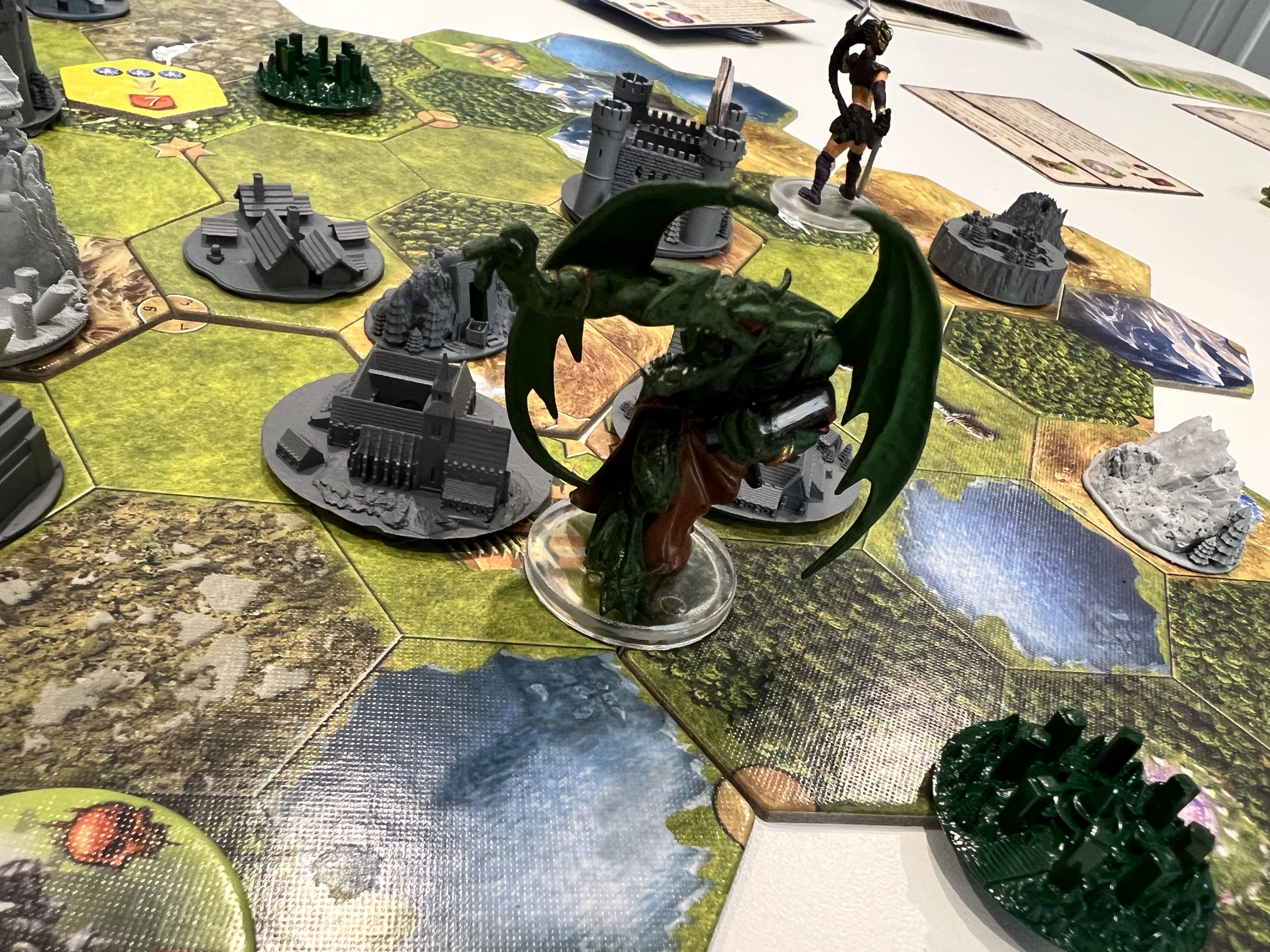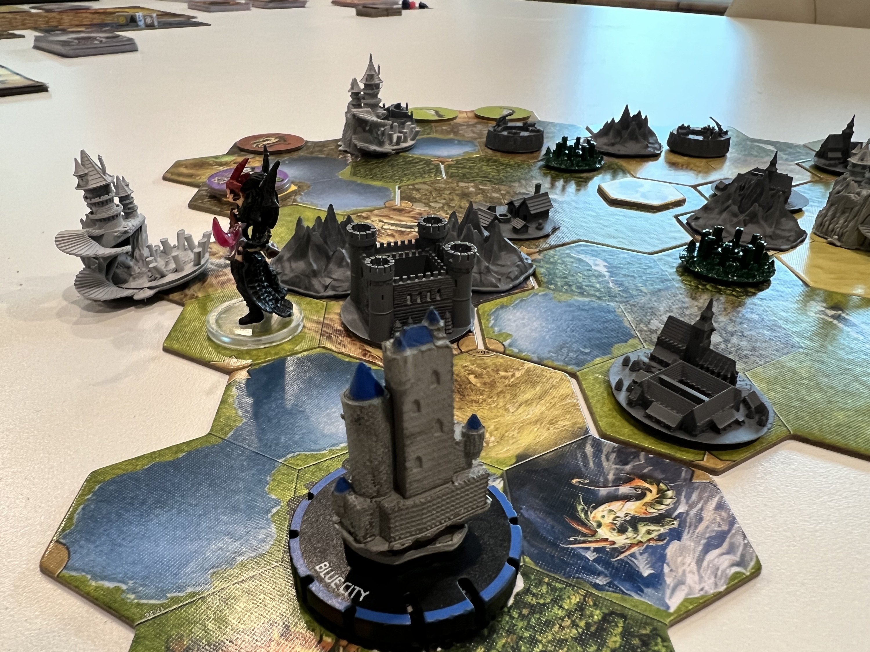 Lee (Goldyx) and Richard (Norowas) played a fully cooperative game where two of the three cities had to be conquered by both players. Both cities were conquered on the last night phase of the game. Lee demanded that a final score be determined for the best player. Richard had captured 3 keep, 1 mage tower, 1 ruin, an underground den, and was controlling player of the two cities. Lee… not so much. Richard’s score was off the score board.