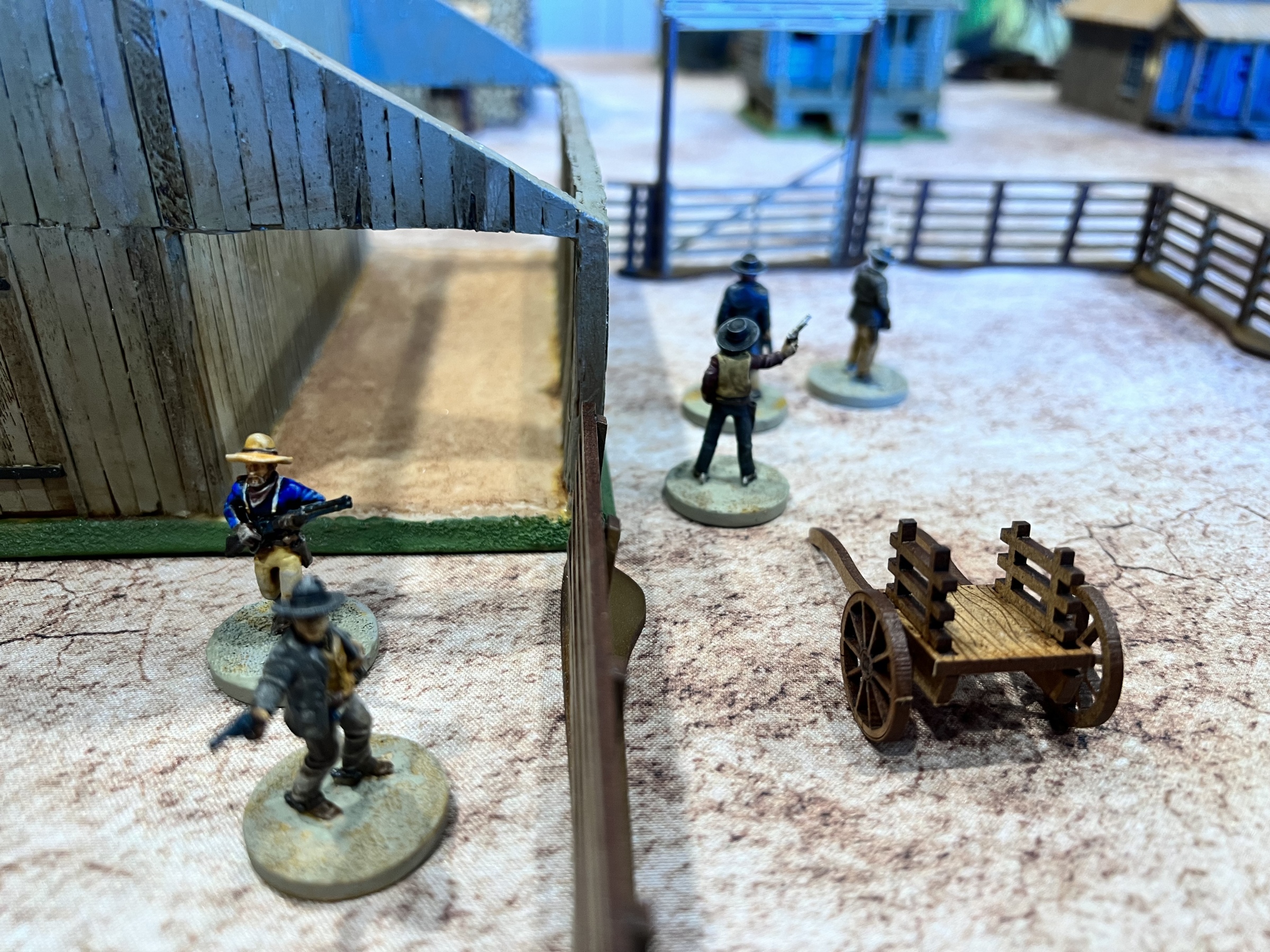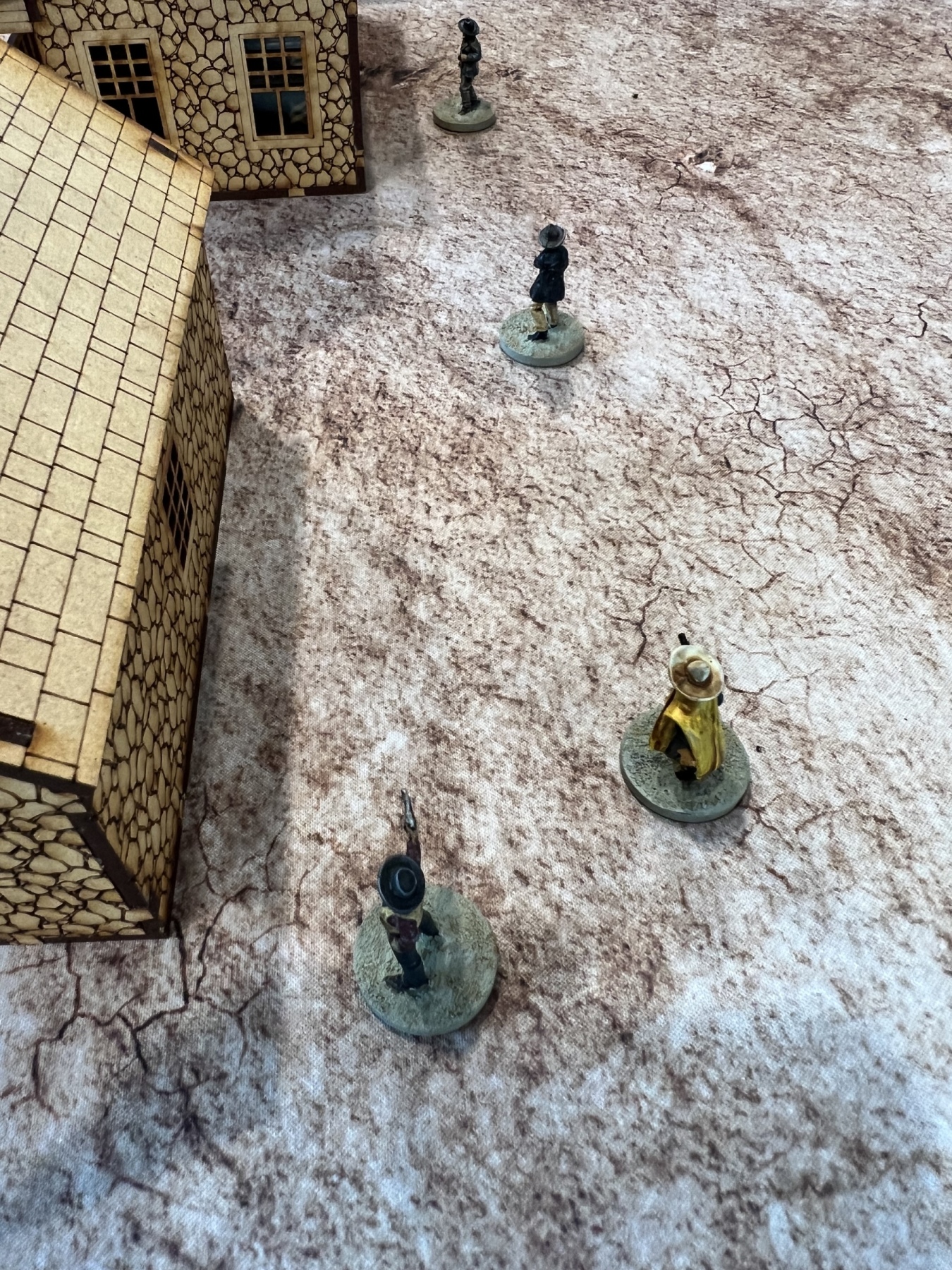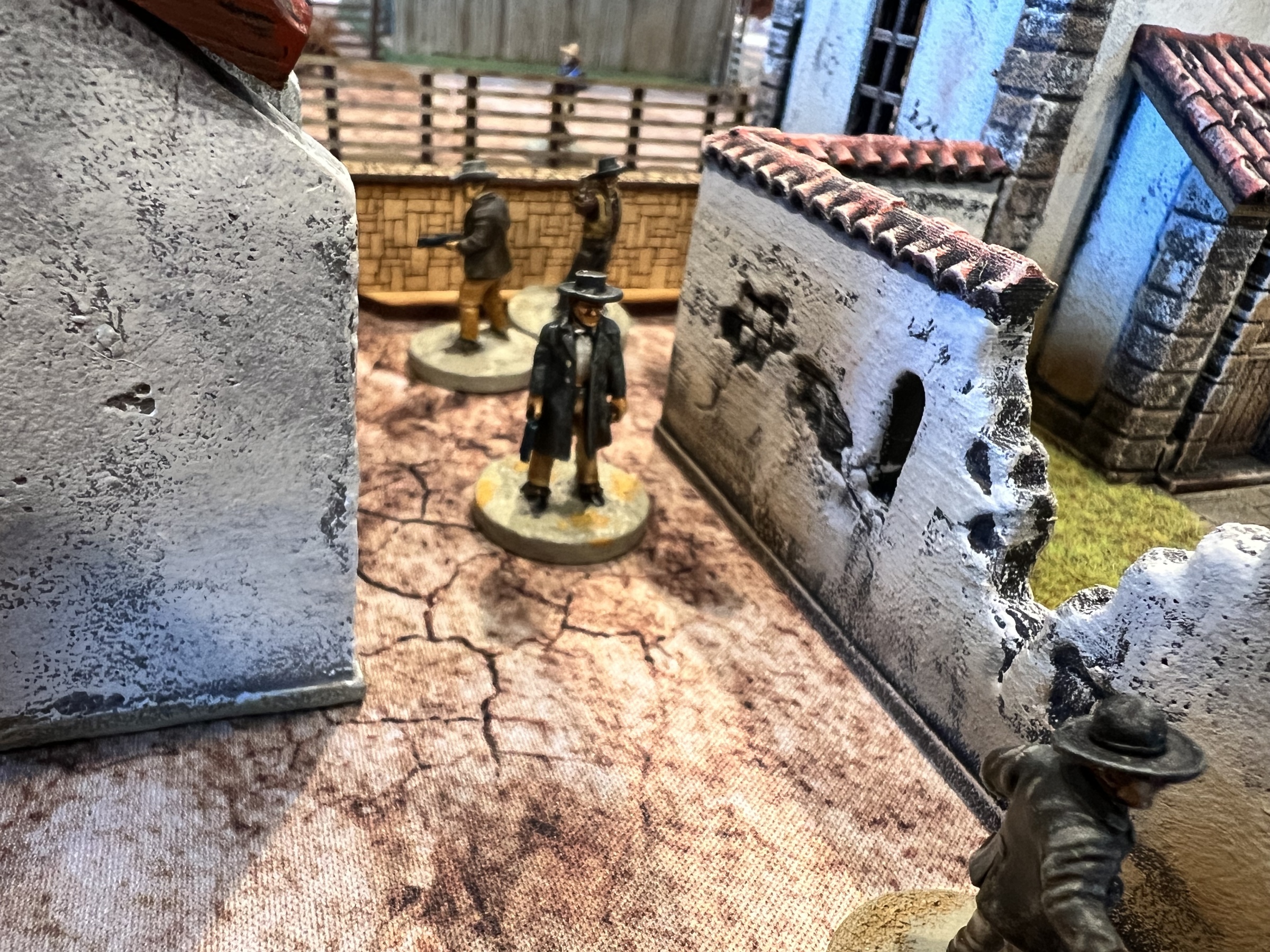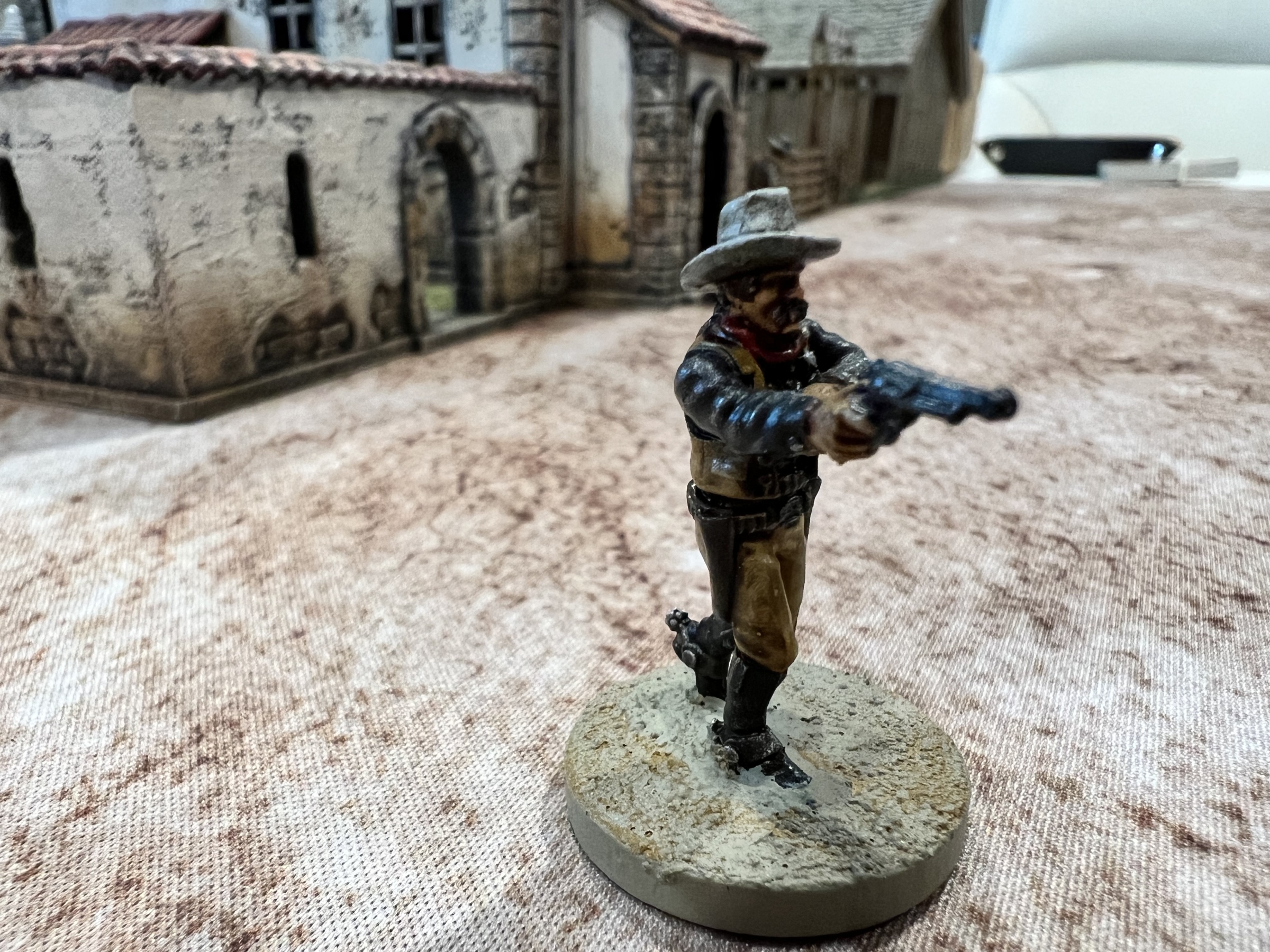 The game started with the bounty hunters trying to slaughter all the women of ill repute. The females were cleansed but at the cost of his life. The other bounty hunter was gunned down in the street by the sheriff and the last behind the church wall.