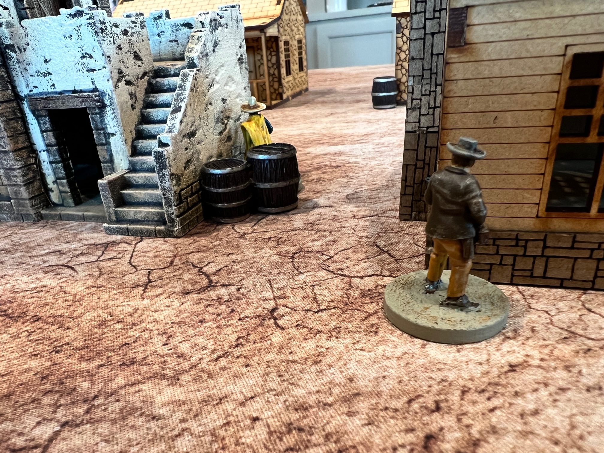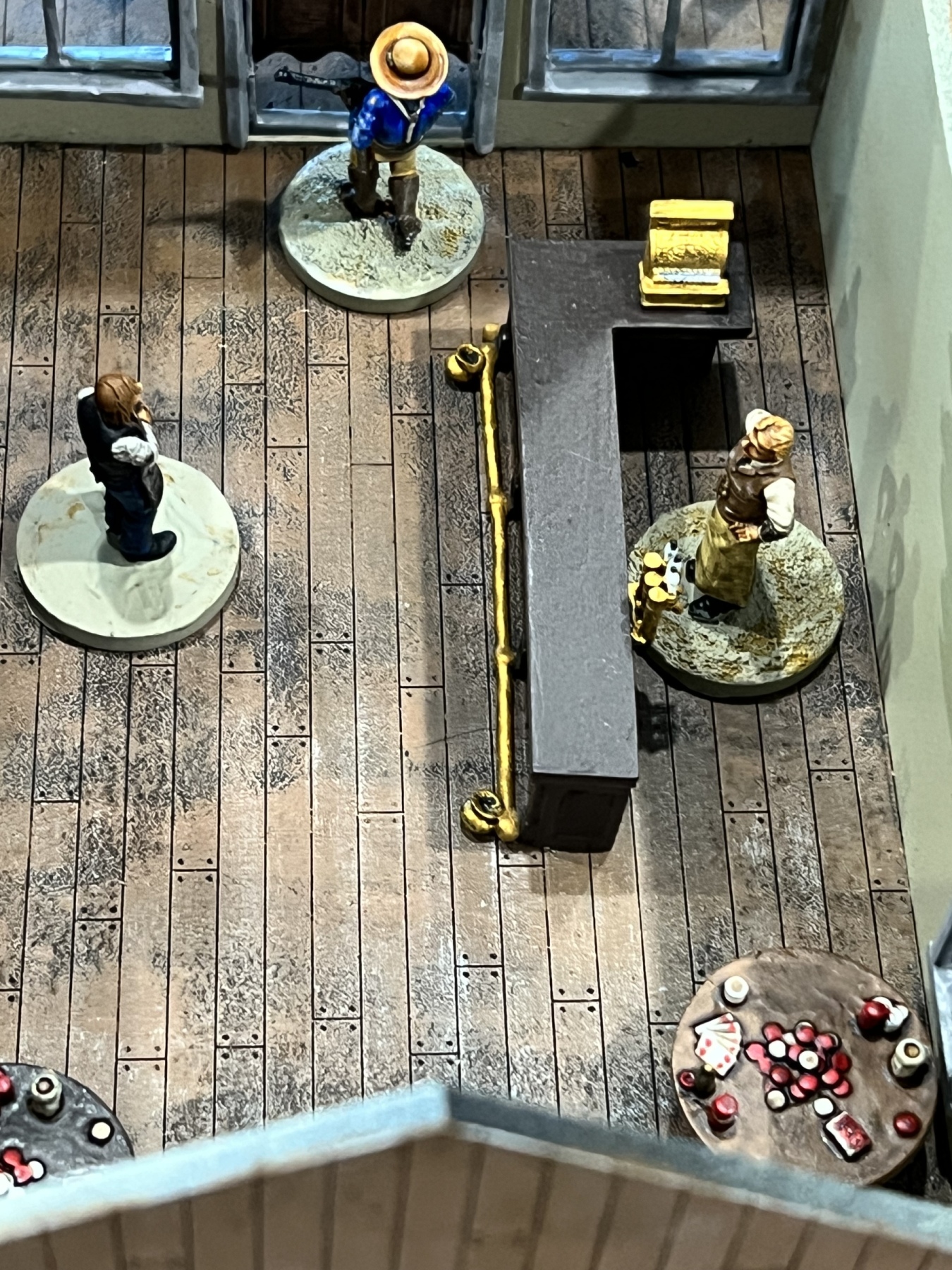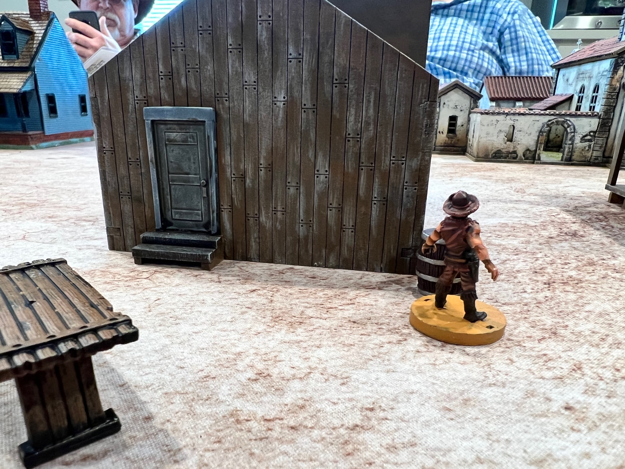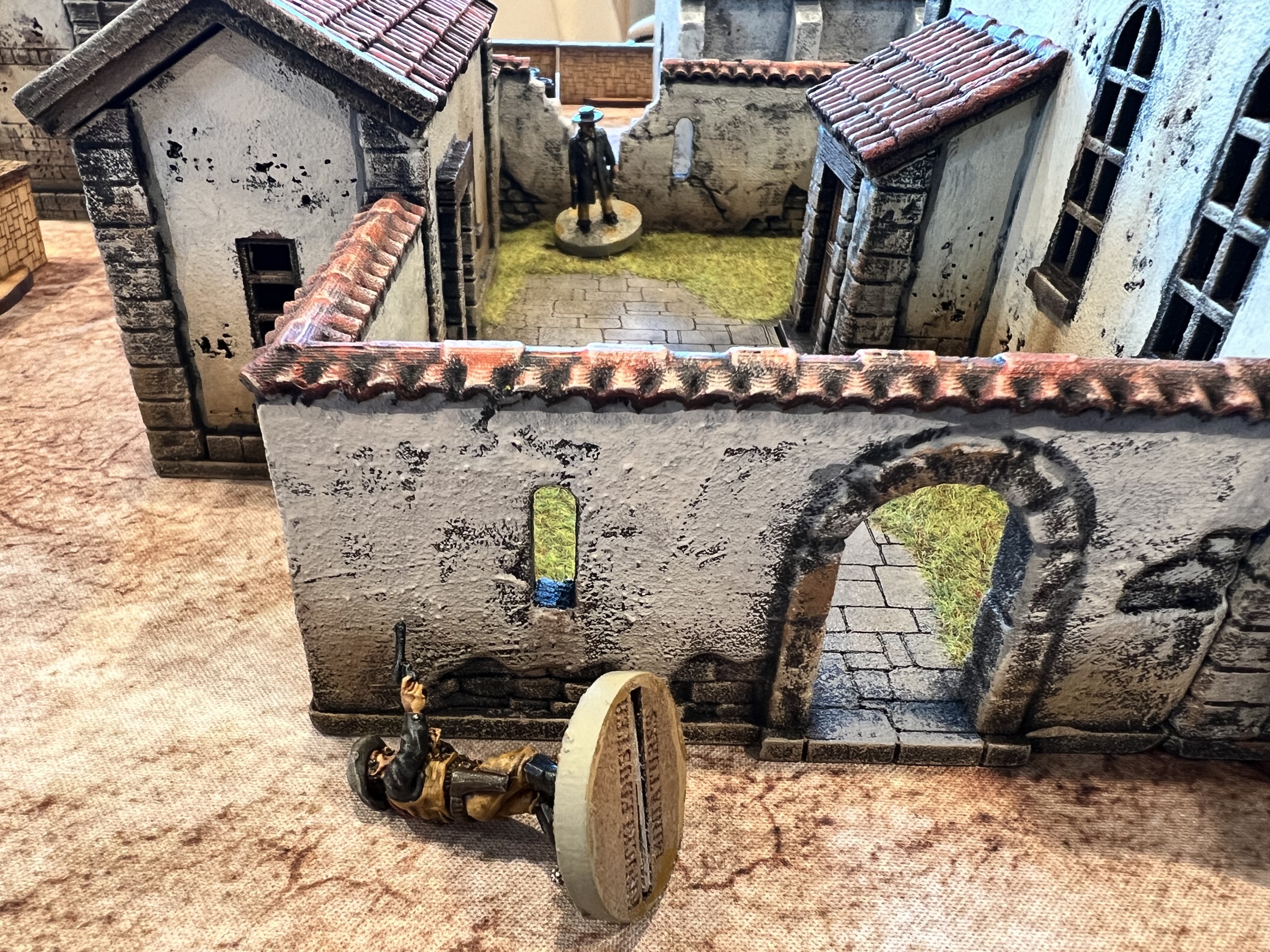 The game started with the bounty hunters trying to slaughter all the women of ill repute. The females were cleansed but at the cost of his life. The other bounty hunter was gunned down in the street by the sheriff and the last behind the church wall.
