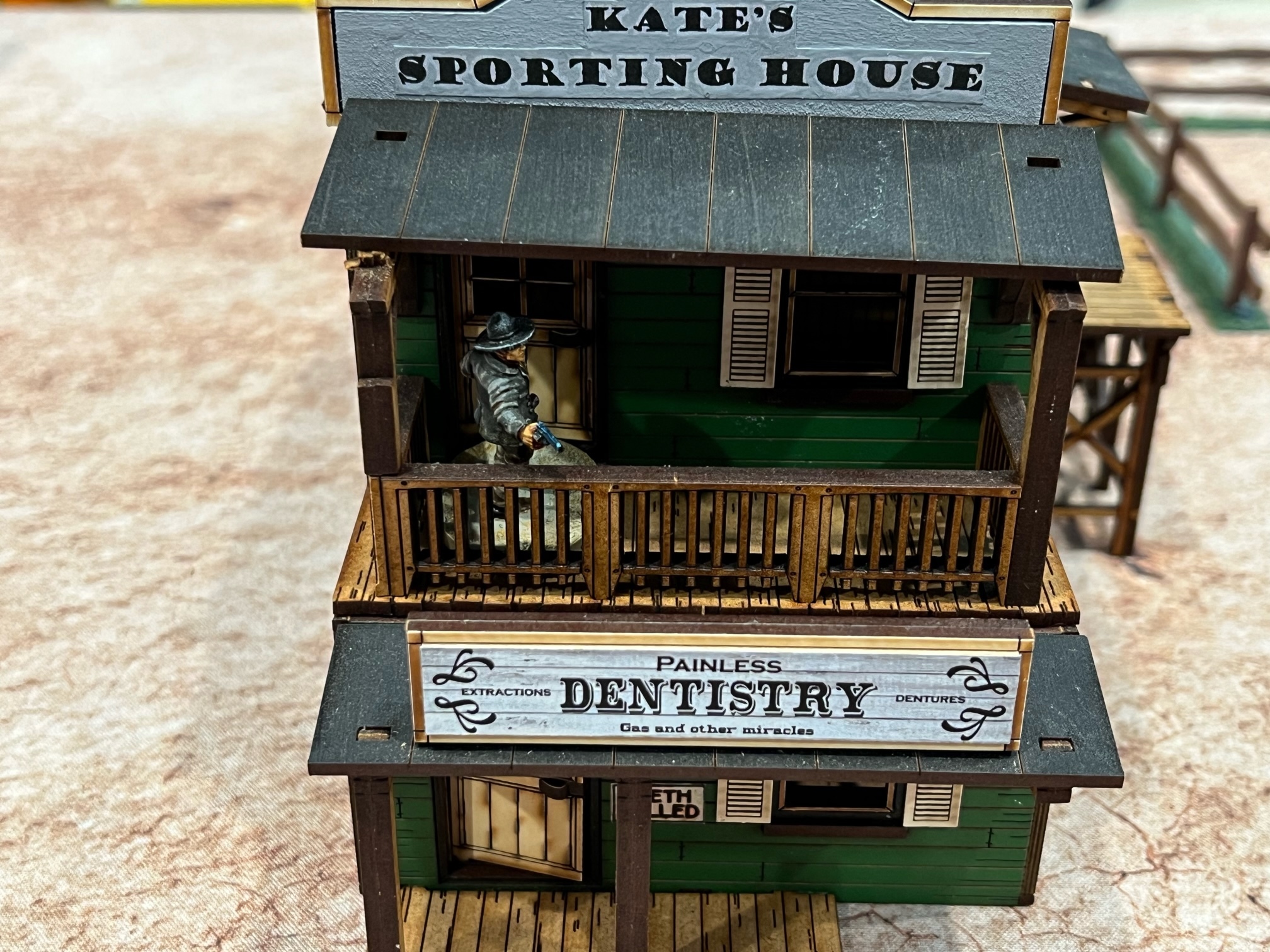 These hardbound, full-color rules tie into a full range of Gunfighter’s Ball figures, buildings, card decks, and other accessories, available from Knuckleduster Miniatures.