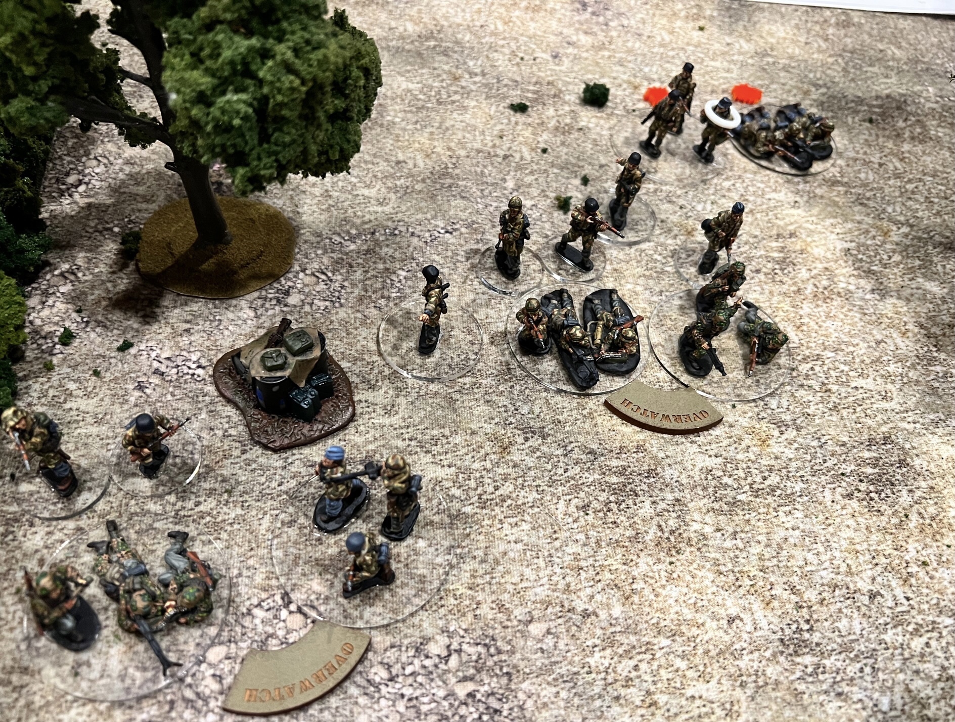 The Germans although initially confused by the American Airborne operations in the early morning, their force is now organized and heading to attack Sainte MereEglise. Scouts report that Neuville–au–Plain was seized by what appear to be American paratroopers only a few hours ago. As the leading element, they were tasked with securing the commune quickly so that their forces can push on quickly to Sainte MereEglise. They have been assigned a good deal of support to help spearhead your attack and crush any resistance.