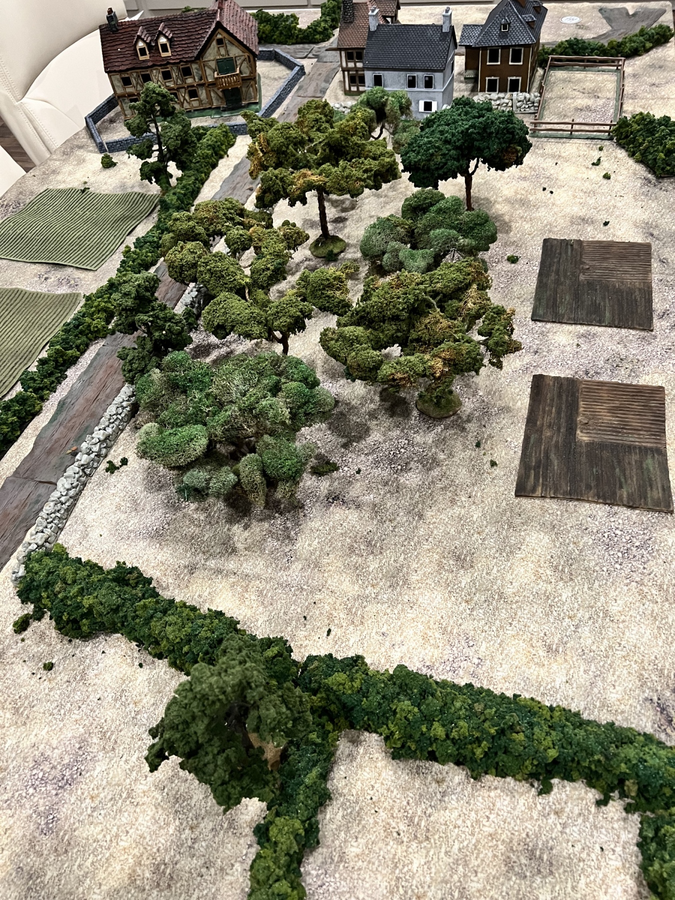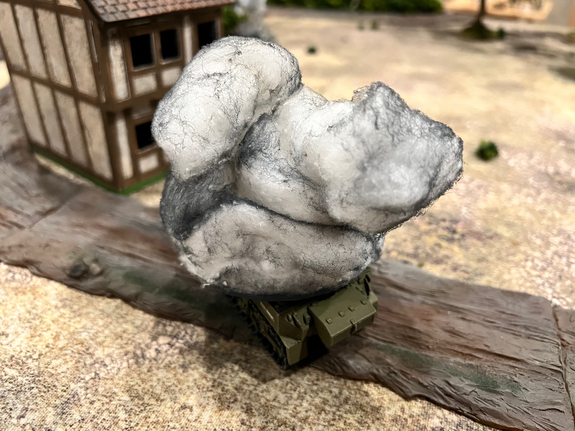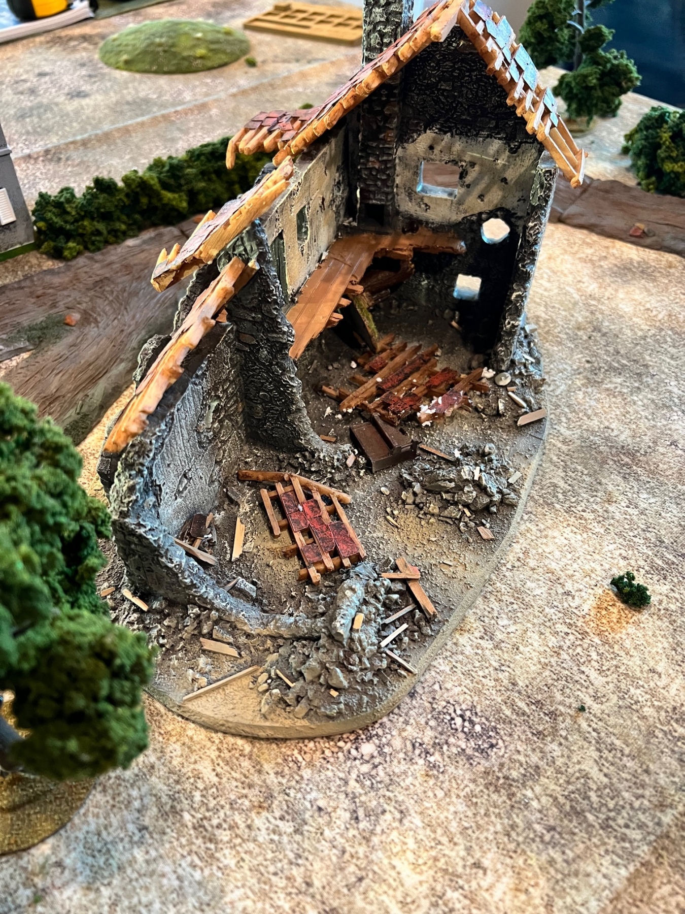 A quick game of Chain of Command. Wigs Graves, a local gamer from a long long time ago who now lives in a galaxy far far away.. Arizona, came to town. Wigs and Jim played the evil Nazis.. The righteous US paratroopers were played by Brian and Lee while an armour attachment of Shermans was played by Richard. After the initial contact, the Germans lost interest in the exchange due to catastrophic loses.