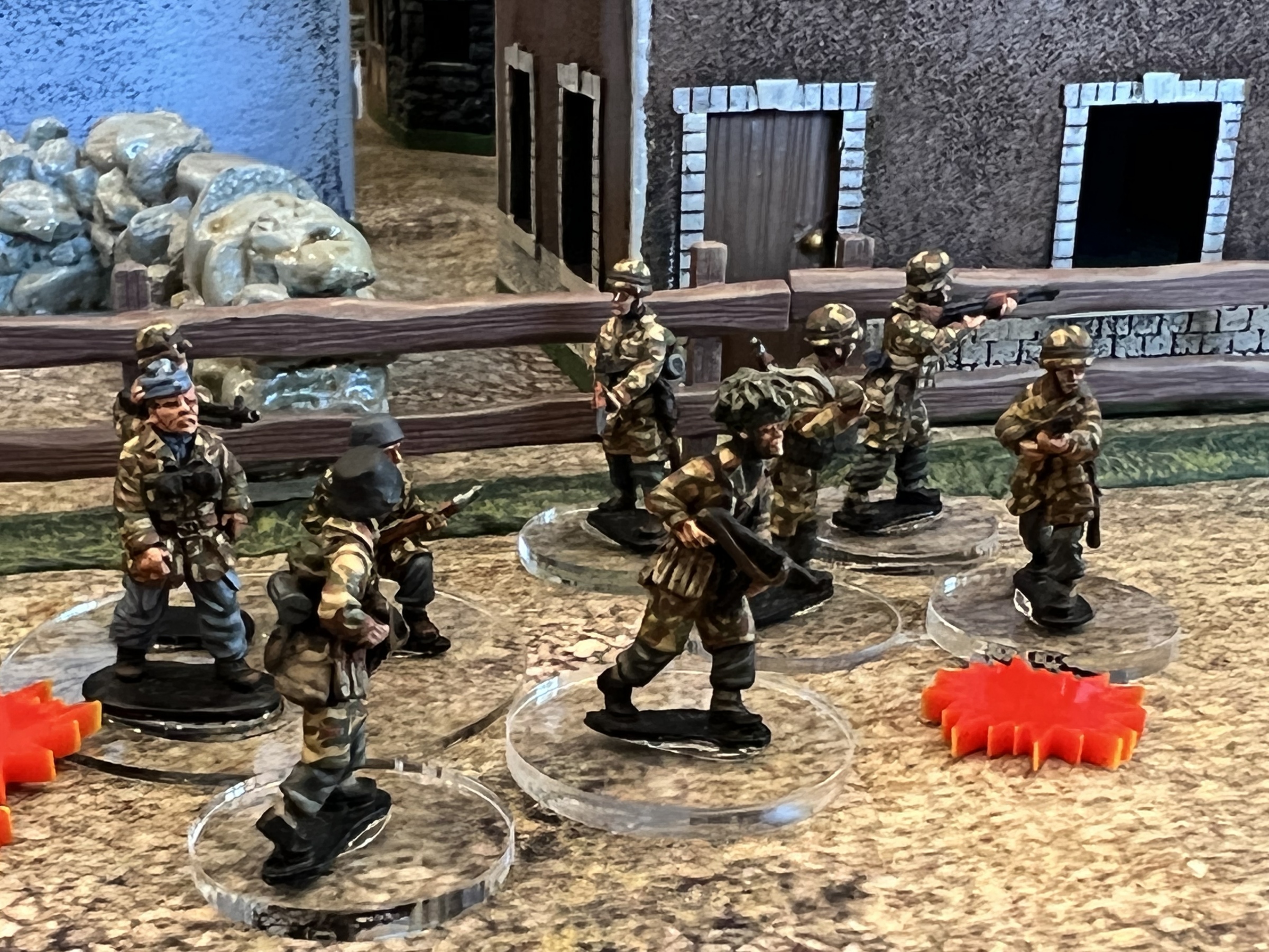 Landing the night before, the American Airborne successfully reached their objective of Neuville-au-Plain. After a brief fight in the morning they seized the small commune and established a defense. Scouts report, however, that a much larger German force is heading your way from Montebourg to the North. Scattered paratroopers are rallying in Sainte MereEglise, but command needs the platoon to hold here until defenses can be established. Delay the enemy advance as best you can and then withdraw to the South.