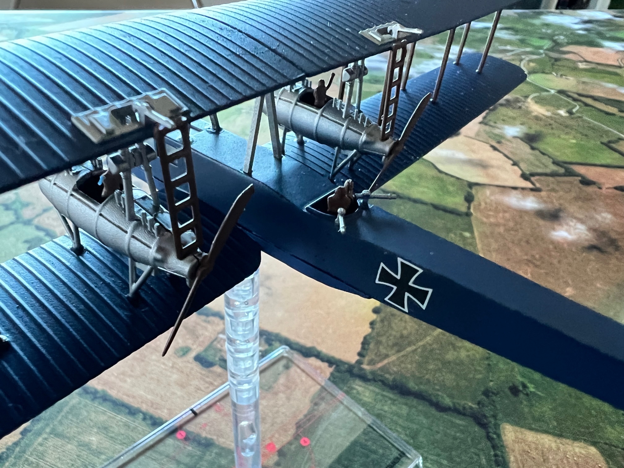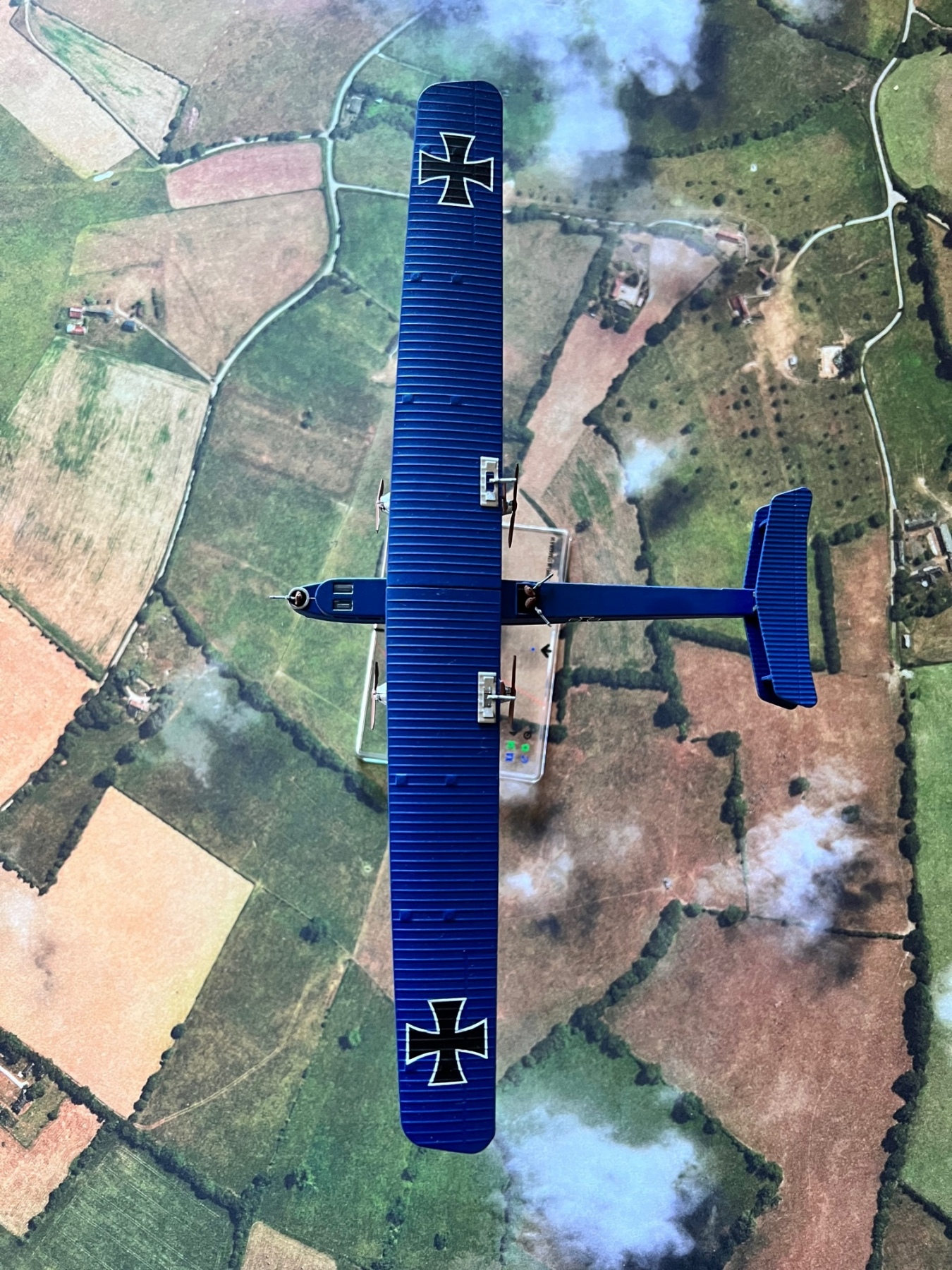 The first Zeppelin mass–produced version to fly over the battle field was the impressive Zeppelin–Staaken R.VI, with a wingspan rivaling that of a WW2 Superfortress. Flying at night with a deadly bomb load up to 4400 pounds, R.VIs were used in bombing raids, bringing destruction and terror to London until the late spring of 1918.