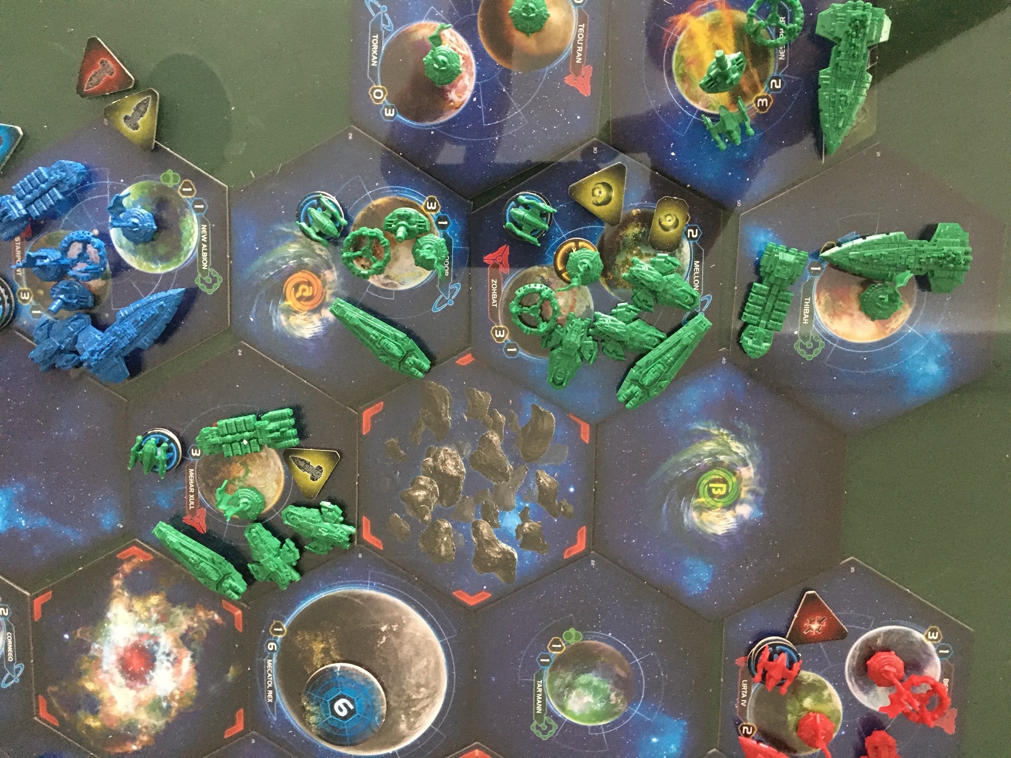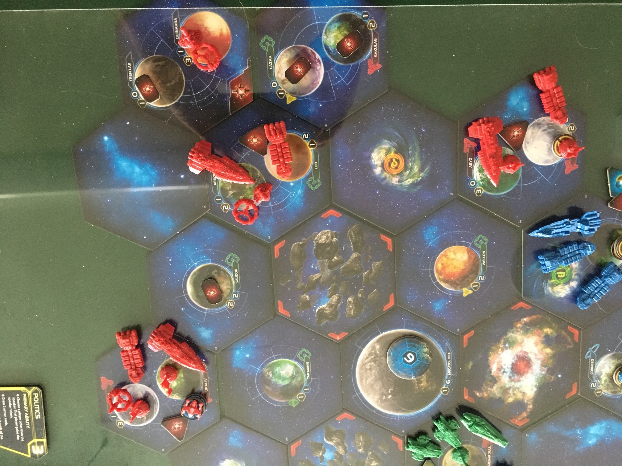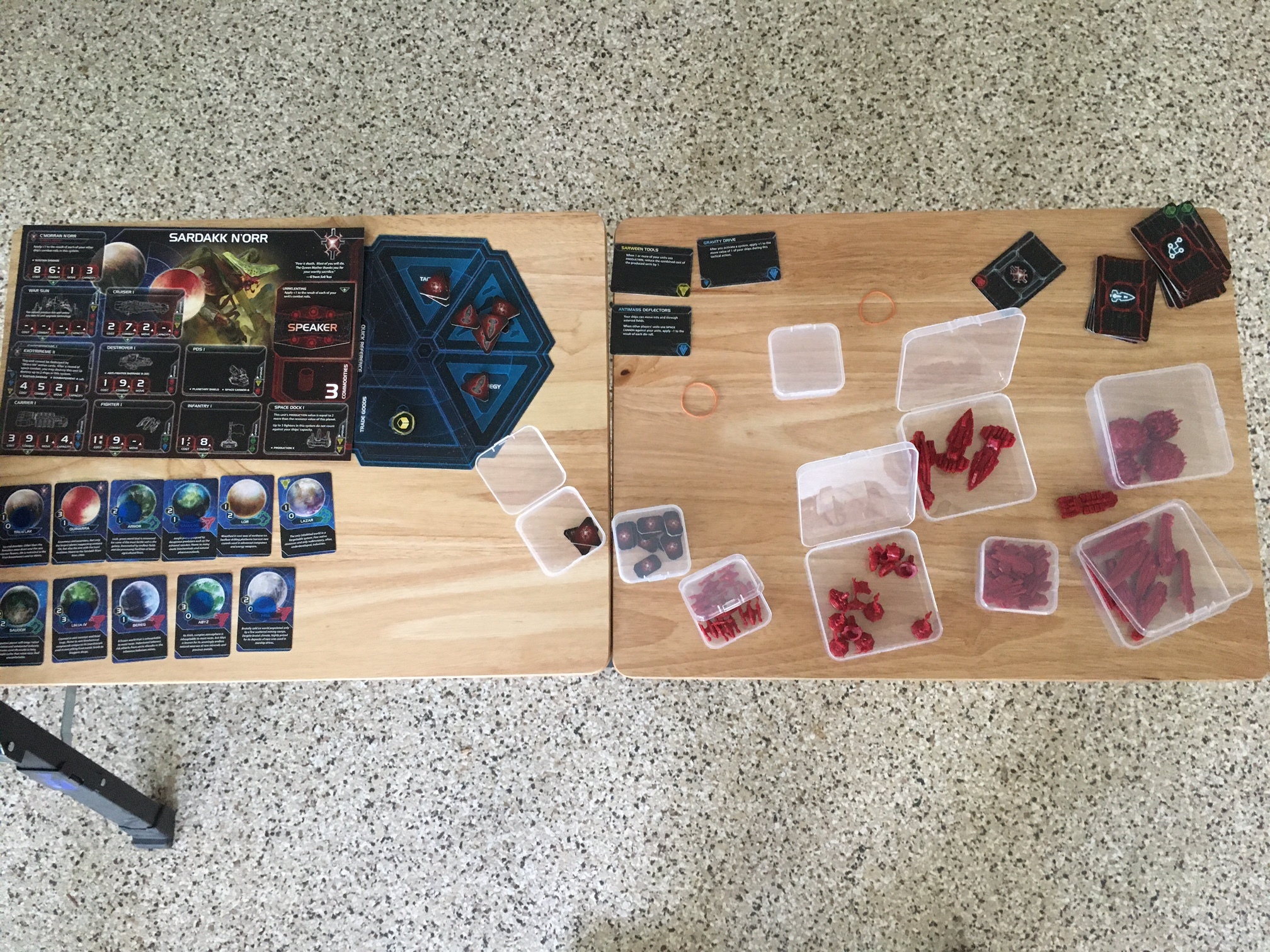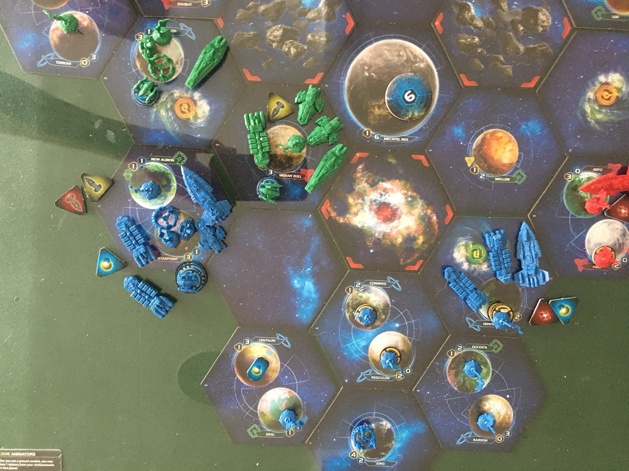 Jim (Sol), Lee (Aborex) and I (Xxcha) played a game of Twilight Imperium. Sol almost eliminated Arborec while Xxcha took a natural stance. The game came to a tie between Xxcha and Sol. It was basically a training game for Jim.