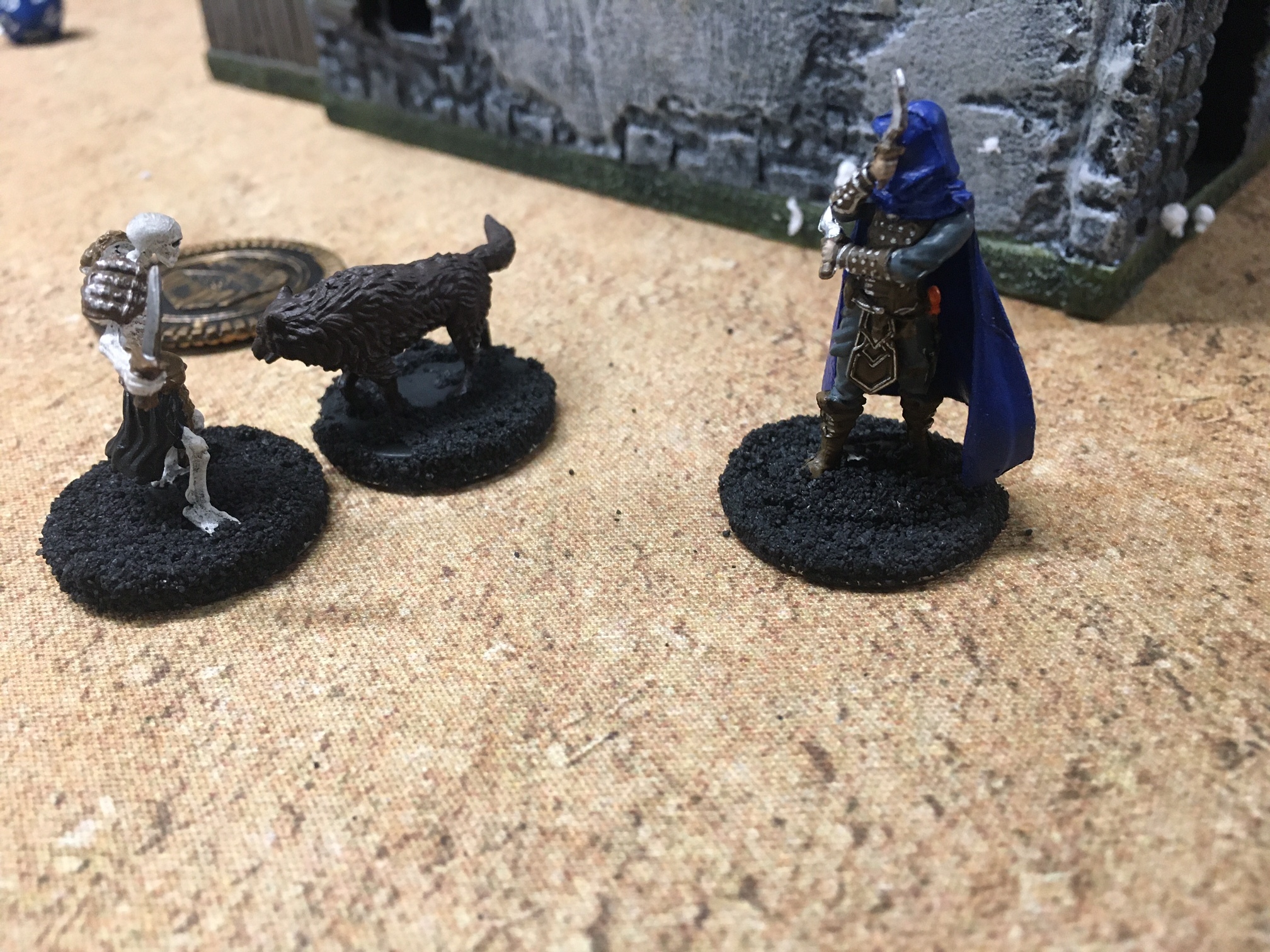 Jim, Lee and I ran our first episode of Rangers of Shadow Deep (RoSD). Jim (fighter) used two companions while Lee (fighter) and Richard (mage) were only given one. Jim had an additional dog and archer, Lee had archer companion and Richard had a rogue companion. There were numerous spiders and zombies. Richard, as expected, lost most of his and companions die rolls. Jim, as usual, scavenged the wounded nasties for the points after Lee and Richard reduced them down to a few health.